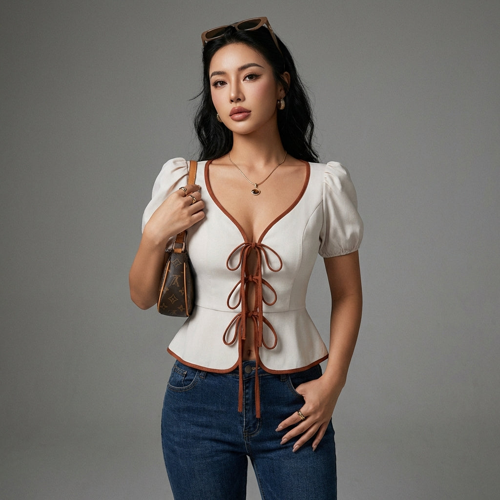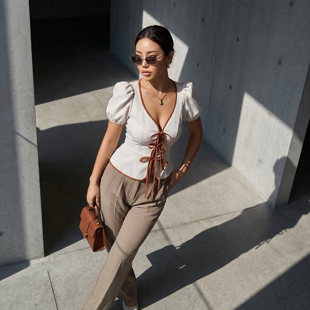 - Stile: Moda coreana, Elegante, Office Lady. Questa camicia incarna l'eleganza discreta e la professionalità della moda coreana, ideale per l'ufficio o un'uscita chic.