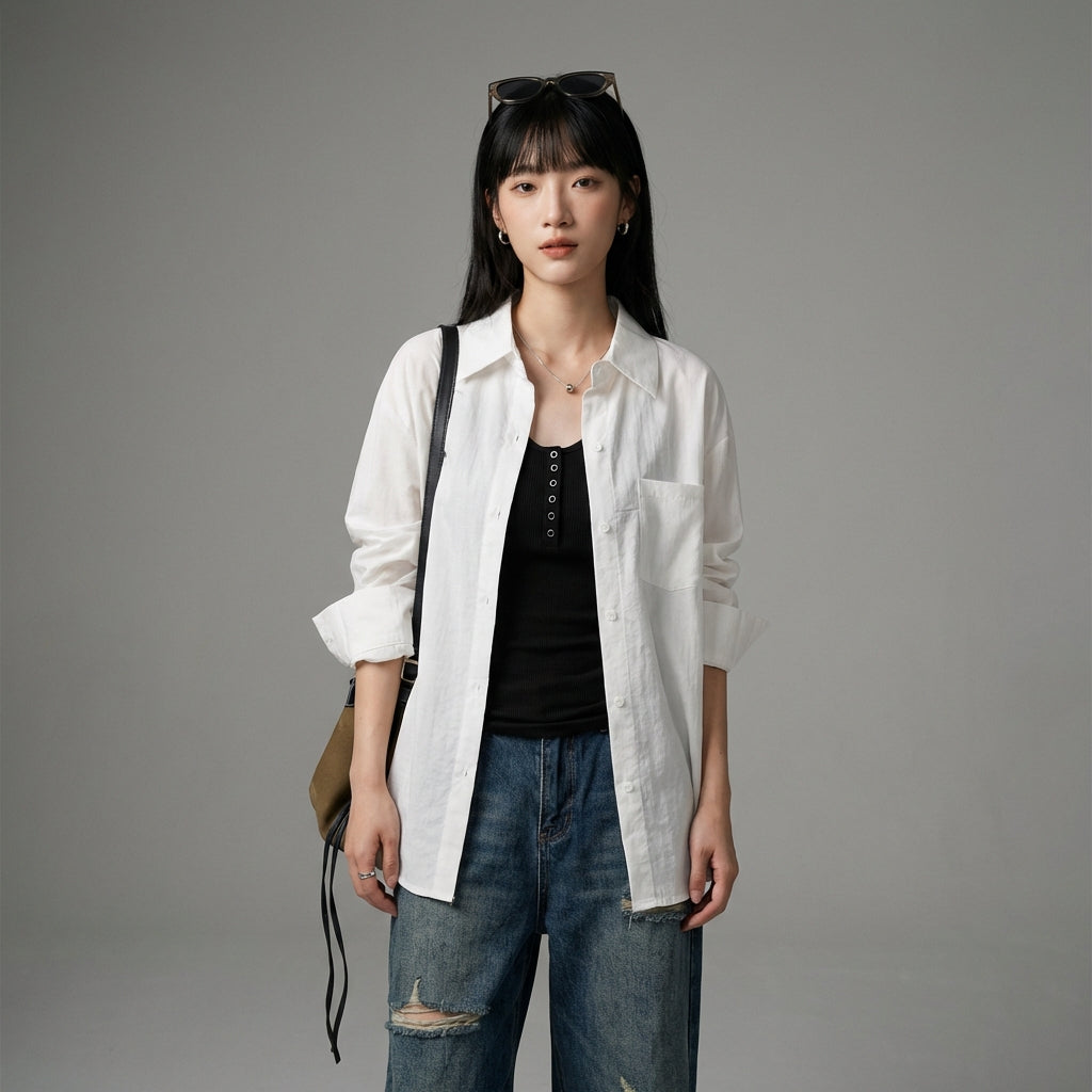 - Stile: K-fashion, Casual, Elegante. Questa camicia incarna la tendenza coreana con un tocco di sofisticazione, perfetta per un look quotidiano o più elegante.