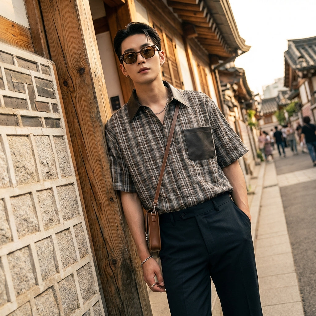 - Stile: Streetwear, K-fashion, Americano Retrò. Questa camicia combina l'audacia dello streetwear con influenze americane retrò e il senso del dettaglio della moda coreana.
