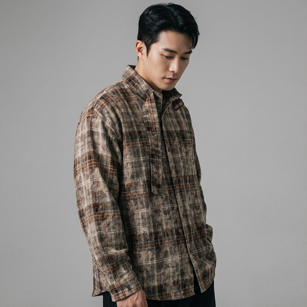- Stile: Streetwear, Vintage, Casual, K-fashion. Questa camicia combina l'estetica streetwear con un tocco vintage e casual, molto apprezzato nella moda coreana.