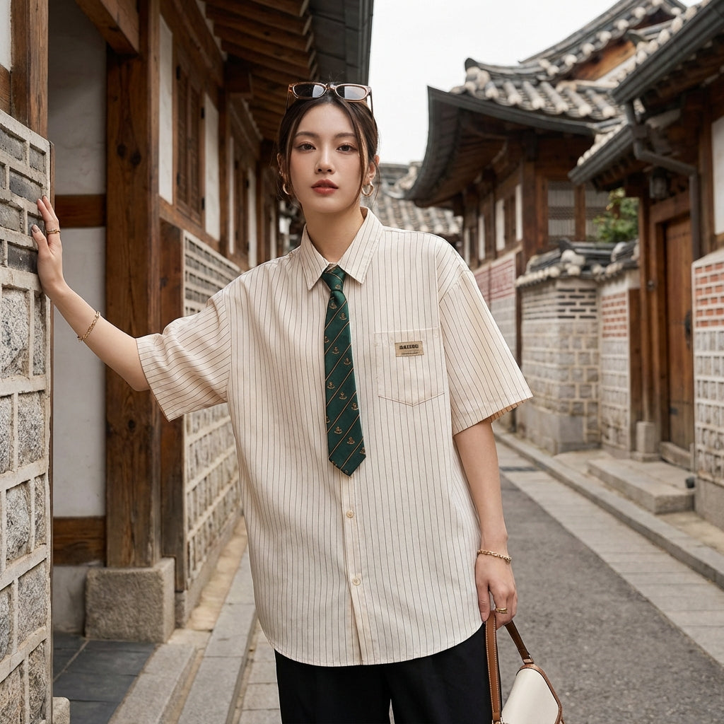 - Stile: Retrò Giapponese, Streetwear, K-fashion. Questa camicia incarna un'estetica casual e stilosa, ispirata alle tendenze asiatiche.