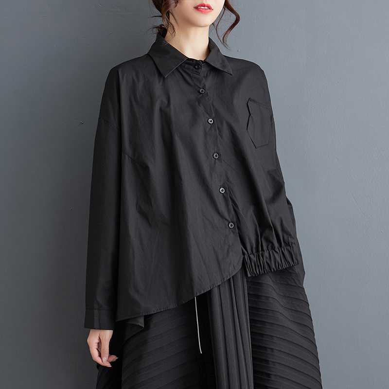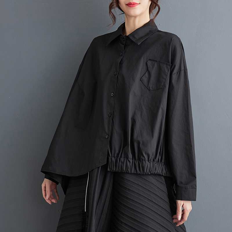 Camicia Asimmetrica Nera Coreana