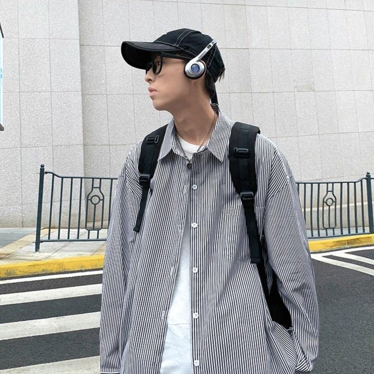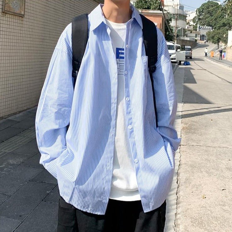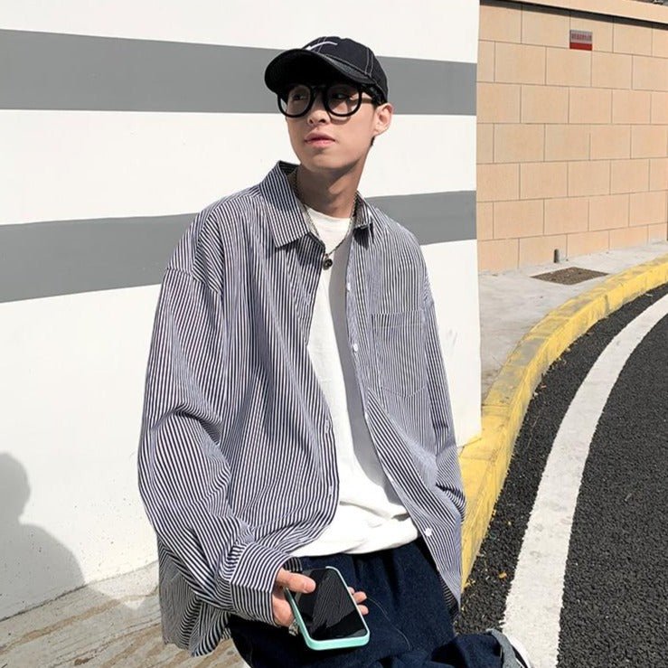 Questa camicia a righe è molto pratica per vestirsi bene e avere uno stile Streetwear. Se sei giovane, è un ottimo compromesso tra stile classico e look di tendenza. La camicia è un must della moda coreana. Questa è disponibile in blu e grigio.