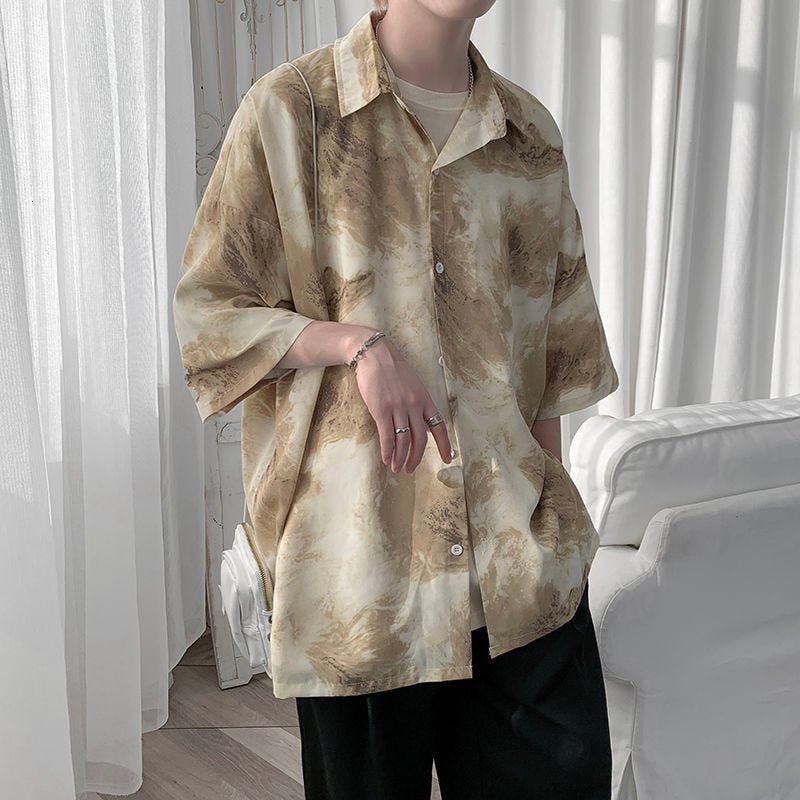 Scegli una camicia atipica quest'estate. Questa camicia a maniche corte è un magnifico top coreano molto di tendenza. I colori grigi e beige mescolati al bianco conferiscono un aspetto molto chic. È una camicia progettata in cotone e poliestere per una maggiore leggerezza.