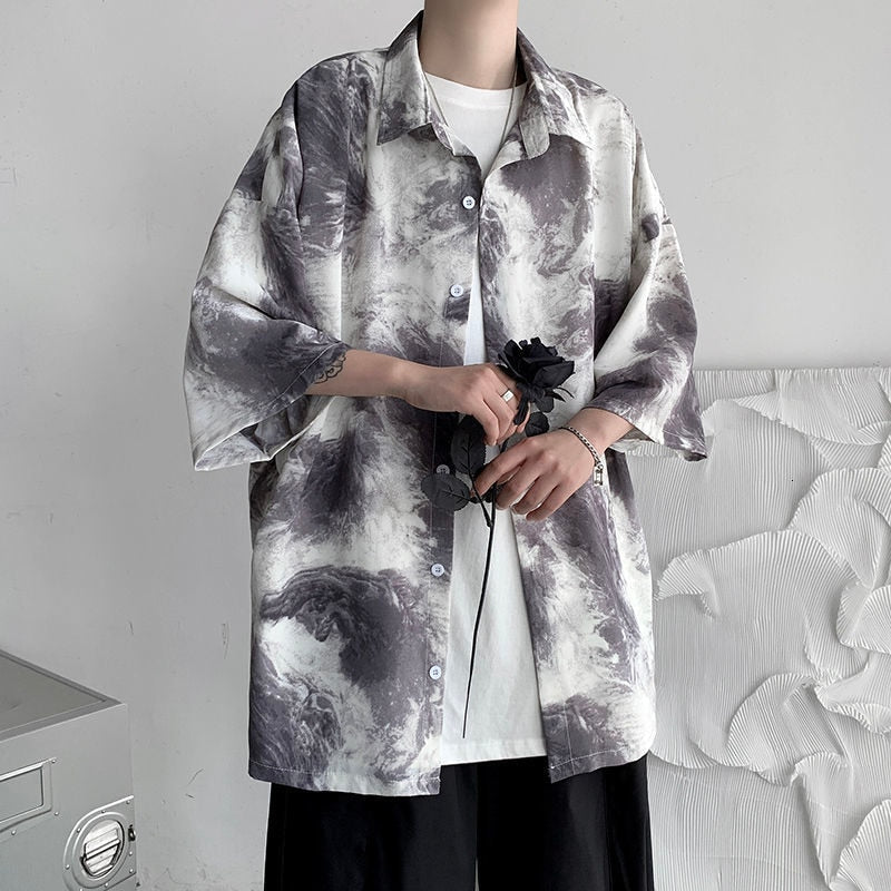 Questa camicia coreana ha un motivo di nebbia molto simpatico.