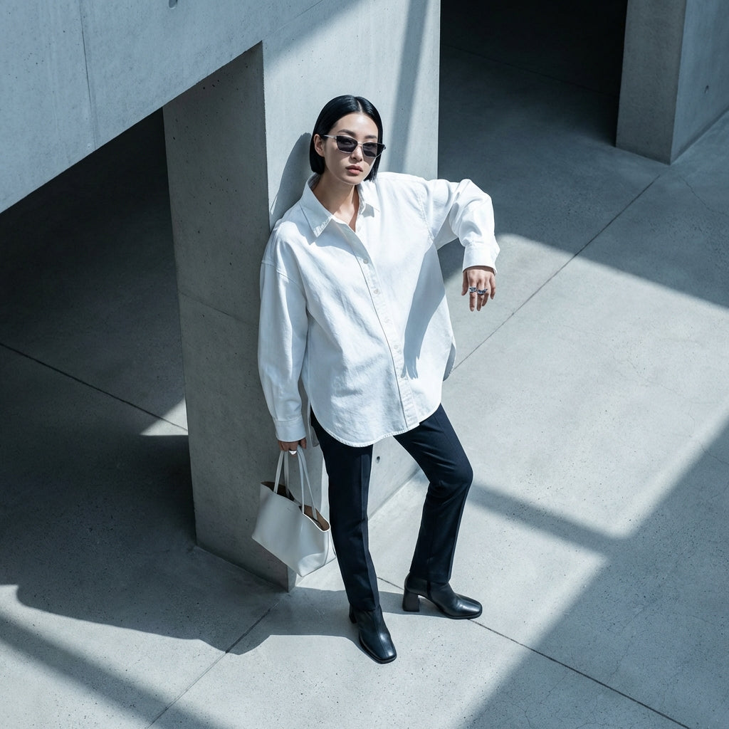 - Stile: Streetwear, Minimalista, Di tendenza. Ispirata alla K-fashion, questa camicia incarna l'eleganza casual e la semplicità moderna.