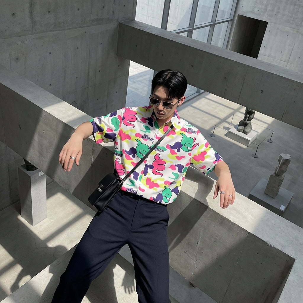 - Stile: Streetwear, K-fashion, Tendenza. Ispirata alla moda urbana coreana, questa camicia è perfetta per esprimere la tua individualità con audacia.