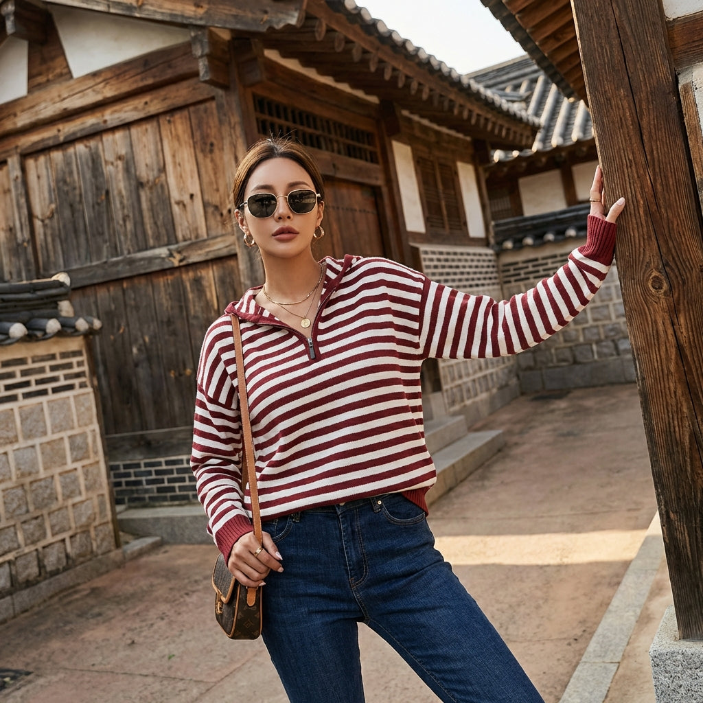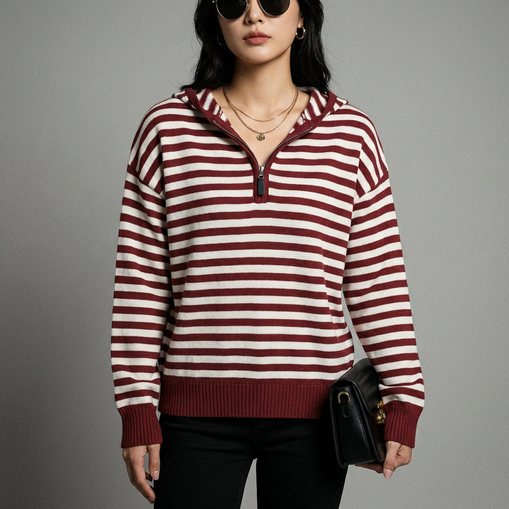 Adotta un look casual ed elegante con il nostro cardigan a righe con cappuccio. Il suo taglio aderente e il design moderno lo rendono un capo essenziale per ogni occasione. Perfetto per aggiungere un tocco di raffinatezza al tuo outfit! 💫