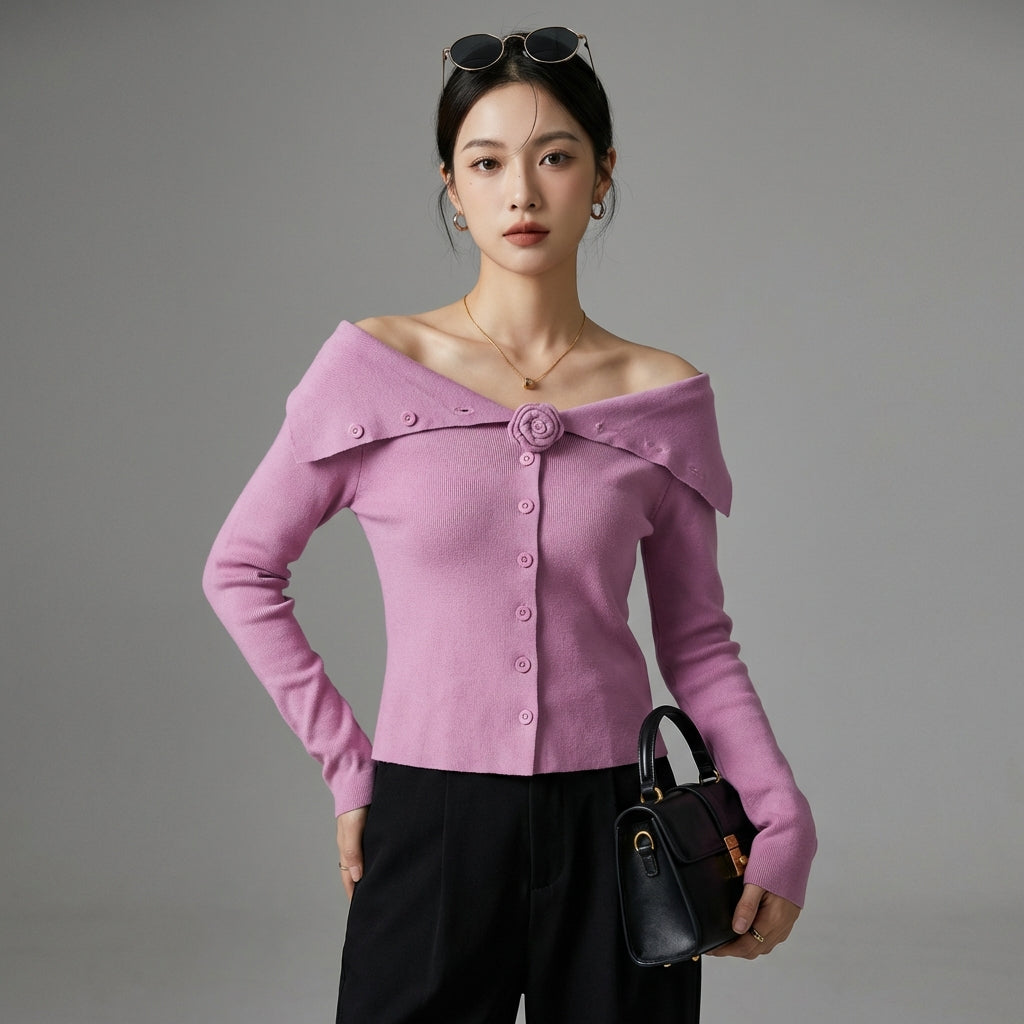 Adotta un look unico e affascinante con il nostro cardigan floreale con spalle scoperte. Questo maglione lavorato a maglia, con scollo a barca e chiusura a bottoni, è perfetto per aggiungere un tocco di originalità e femminilità ai tuoi outfit casual! 🌸
