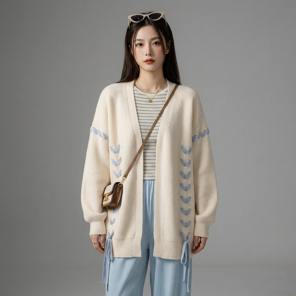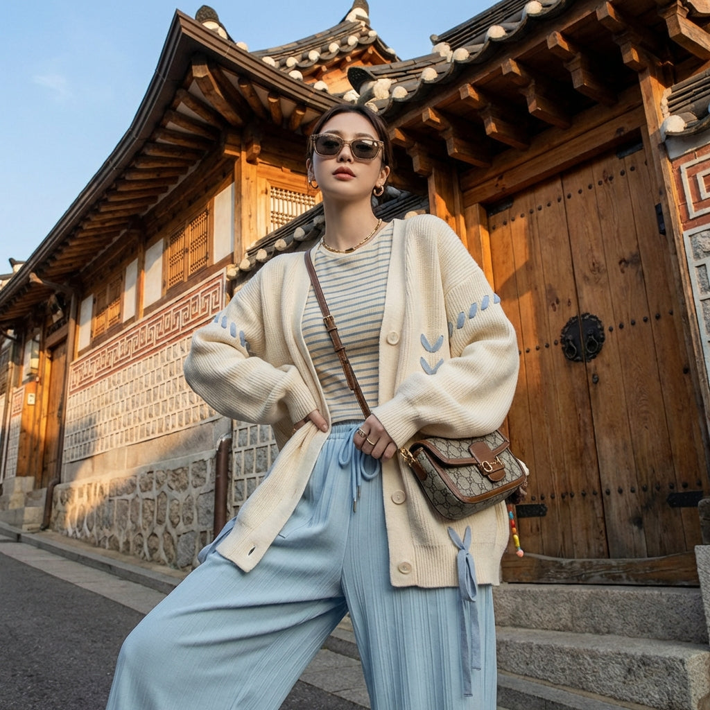 - Stile: K-fashion, Streetwear, Casual, Oversize. Questo cardigan incarna la moda coreana con una silhouette moderna e rilassata.