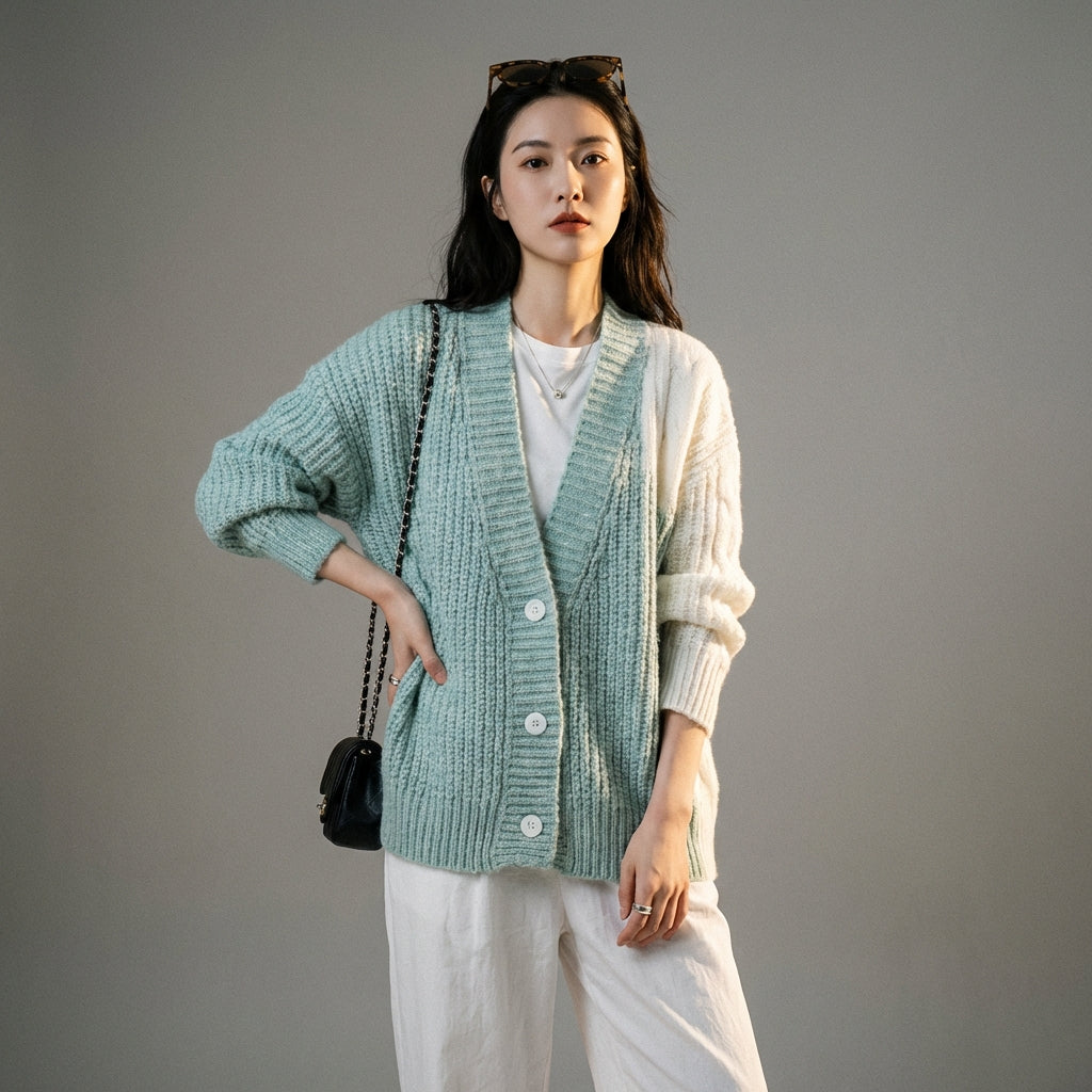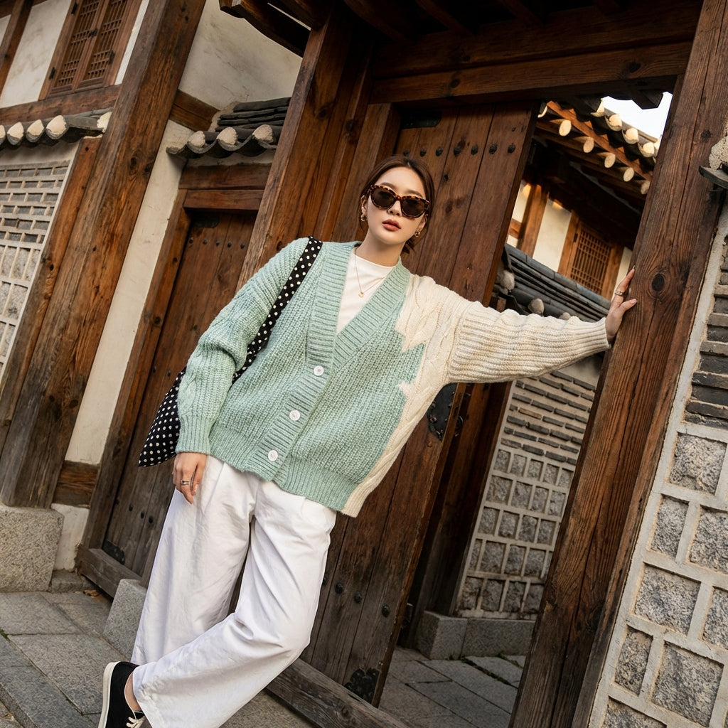 - Stile: Moda coreana, Casual chic, Tendenza. Questo cardigan incarna l'estetica rilassata e moderna della K-fashion, facile da abbinare.