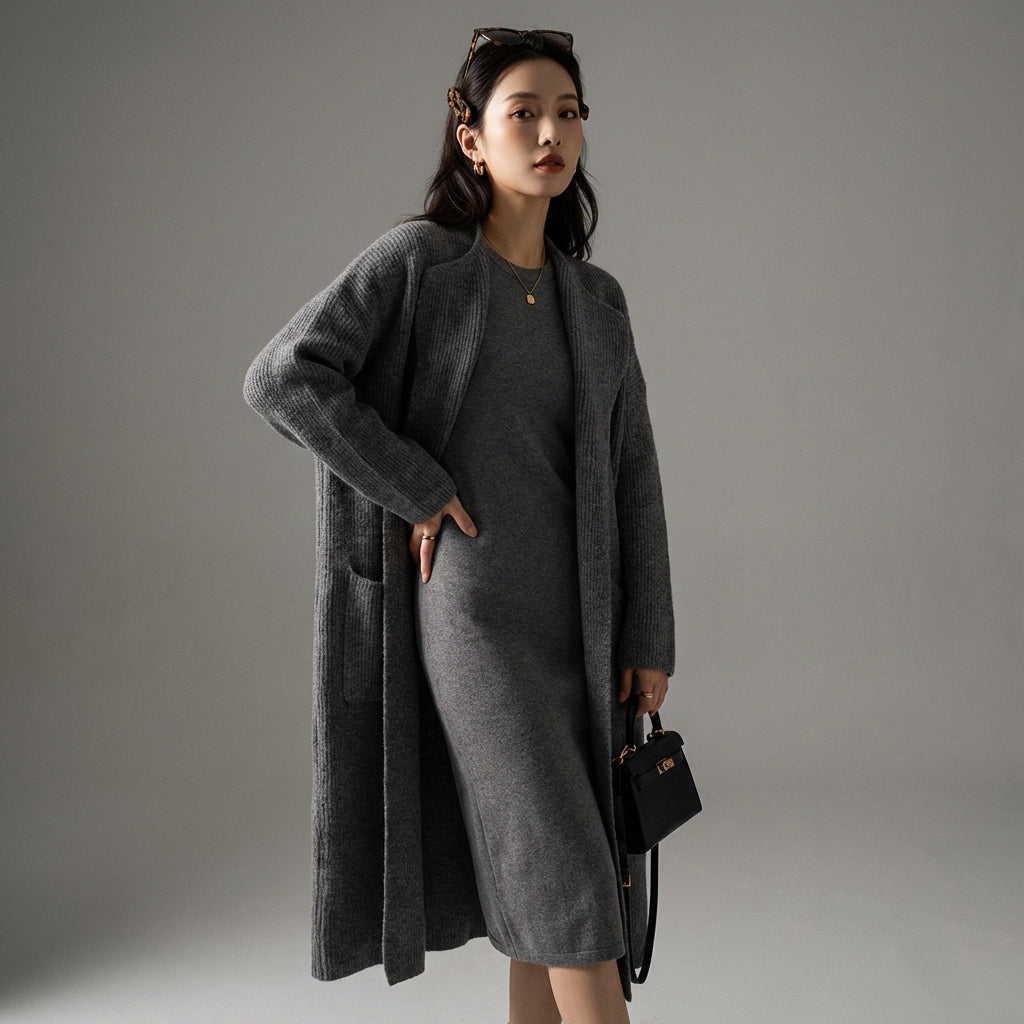 Adotta un look casual ed elegante con il nostro cardigan lungo lavorato a maglia, perfetto per ogni occasione. Il suo taglio ampio e la lunghezza al ginocchio ti offrono comfort e stile, esaltando la tua silhouette! 🍂