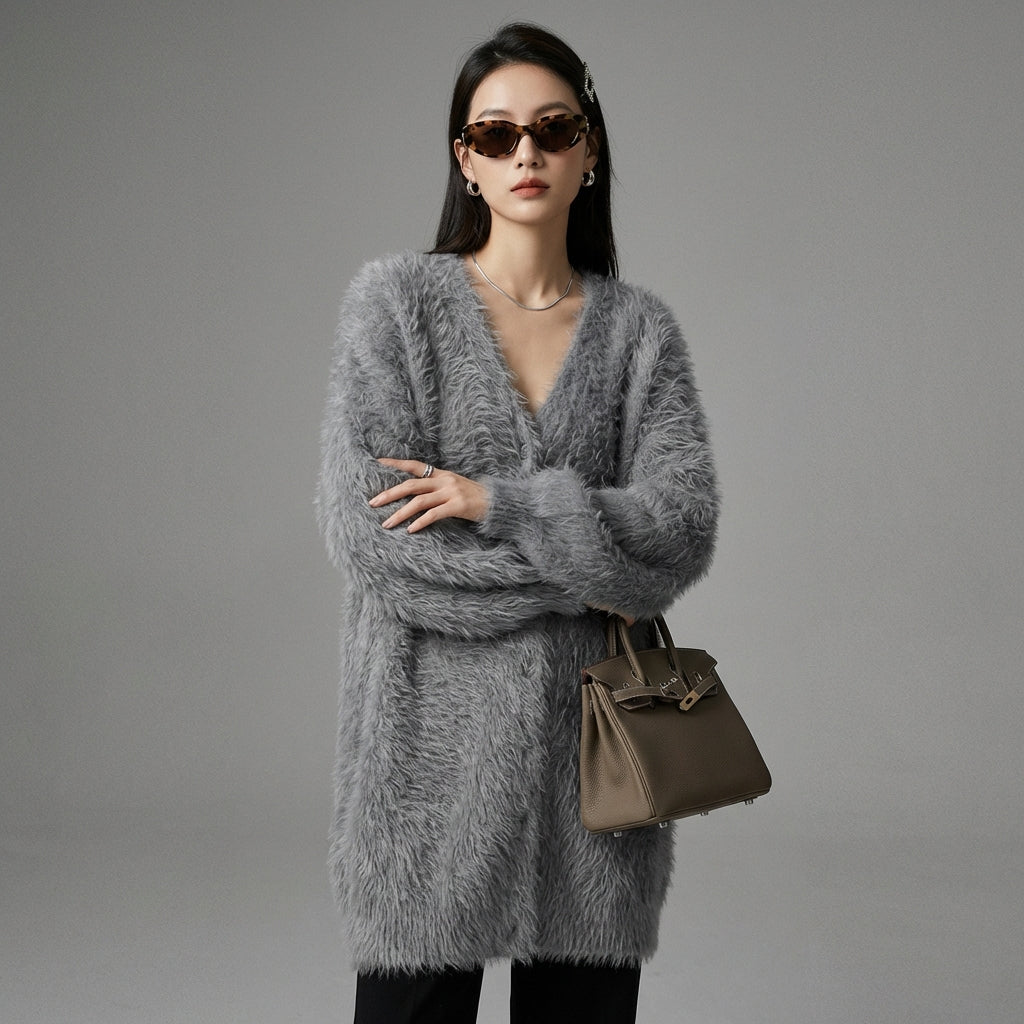 Adotta l'eleganza casual con il nostro cardigan lungo in maglia, caratterizzato da scollo a V e vestibilità ampia. Perfetto per essere indossato a strati e aggiungere un tocco di raffinatezza al tuo outfit quotidiano! ✨