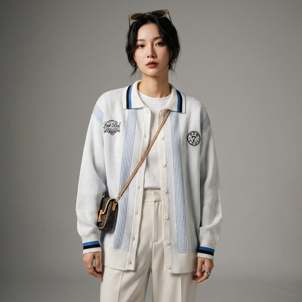 - Stile: K-fashion, College, Casual, Tendenza. Questo cardigan incarna l'estetica casual e stilosa della moda coreana, ideale per un look da studente o urbano.