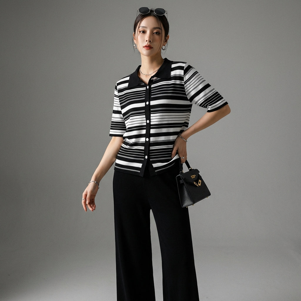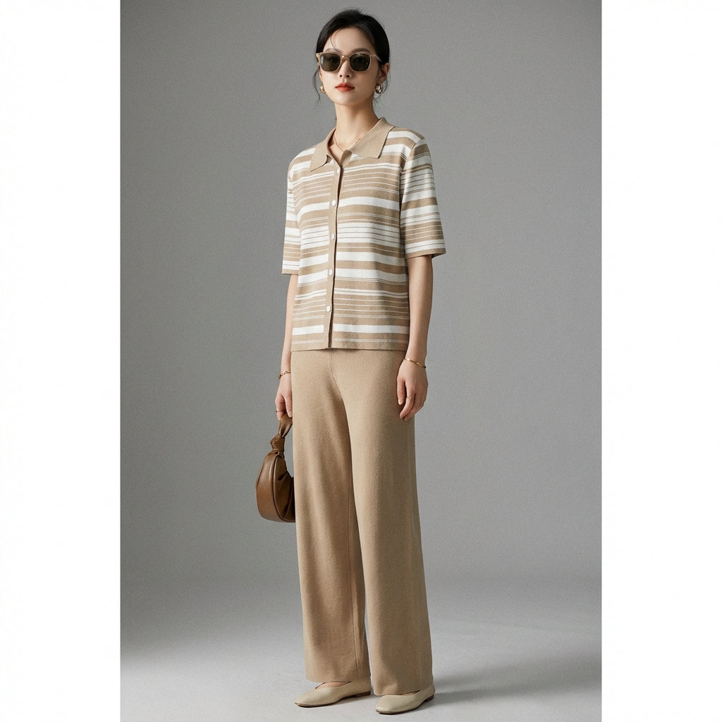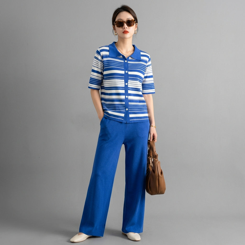Adotta un look casual e chic con il nostro completo due pezzi a righe, perfetto per ogni occasione. Comodo e alla moda, diventerà presto un capo irrinunciabile del tuo guardaroba estivo! ☀️