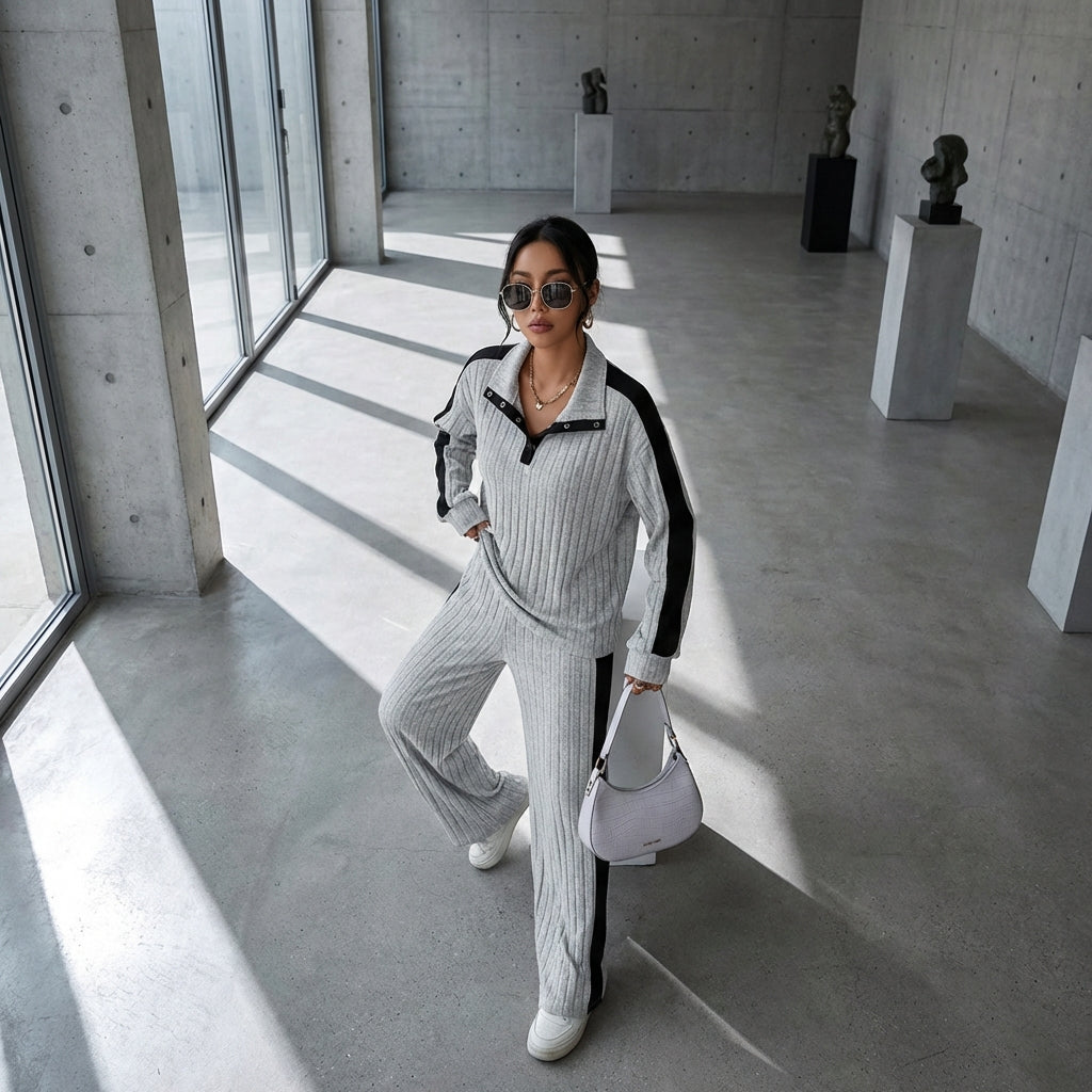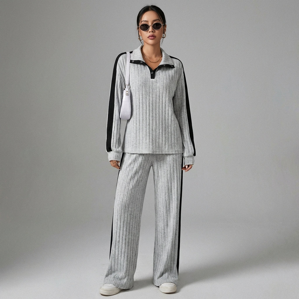 Adotta un look casual e chic con questo completo armonioso, perfetto per ogni occasione. Il suo design pulito con un colletto a contrasto aggiunge un tocco di originalità, mentre il taglio ampio assicura un comfort assoluto. Ideale per una silhouette trendy e moderna! ✨