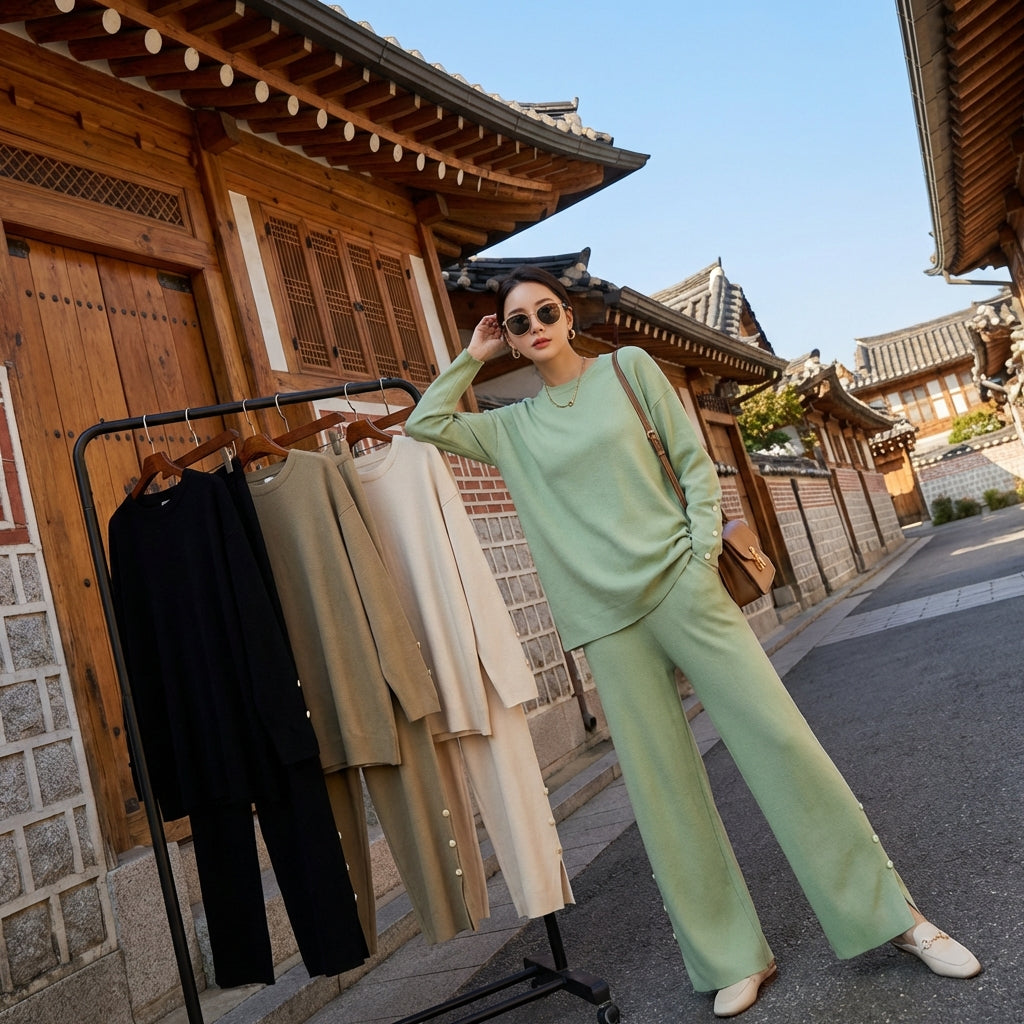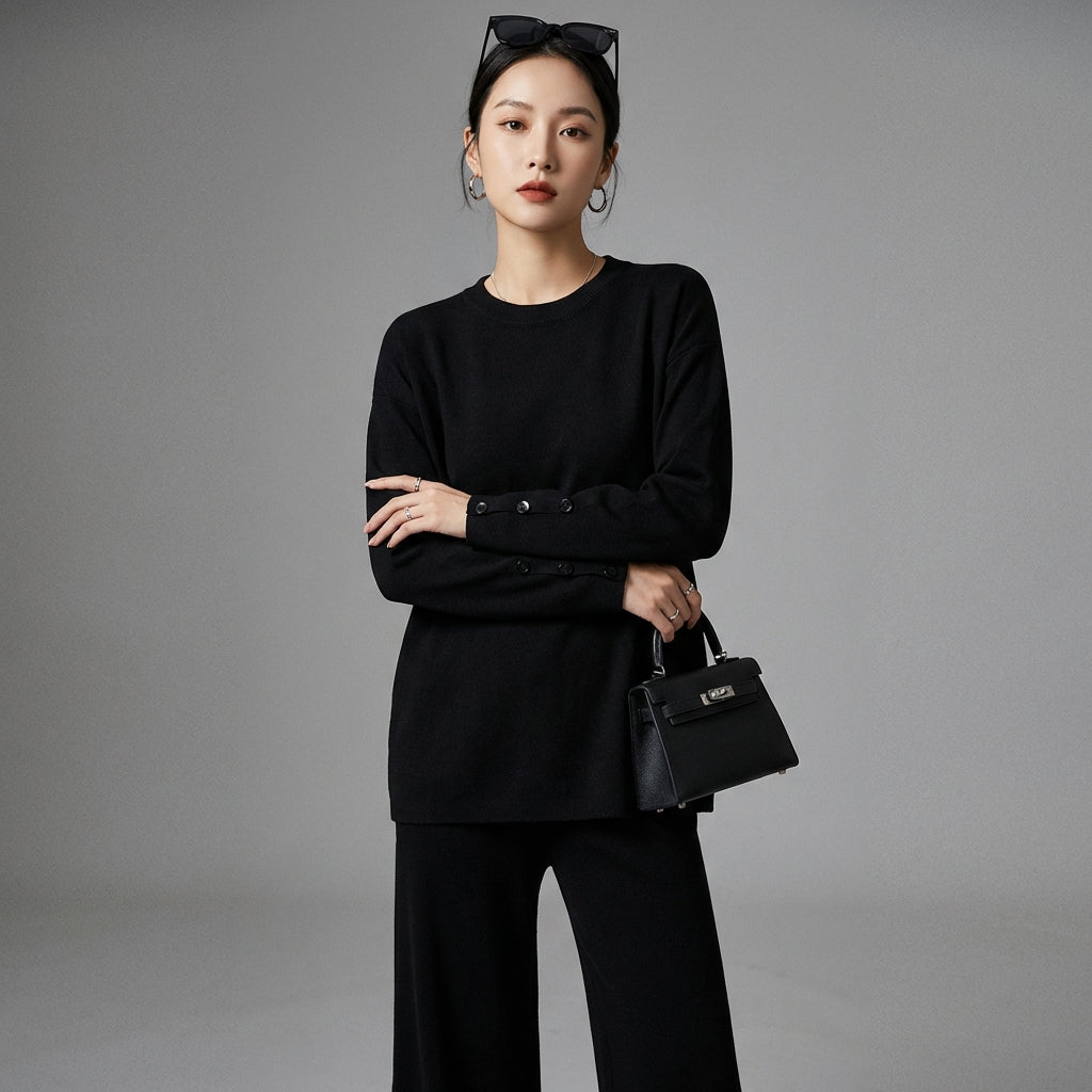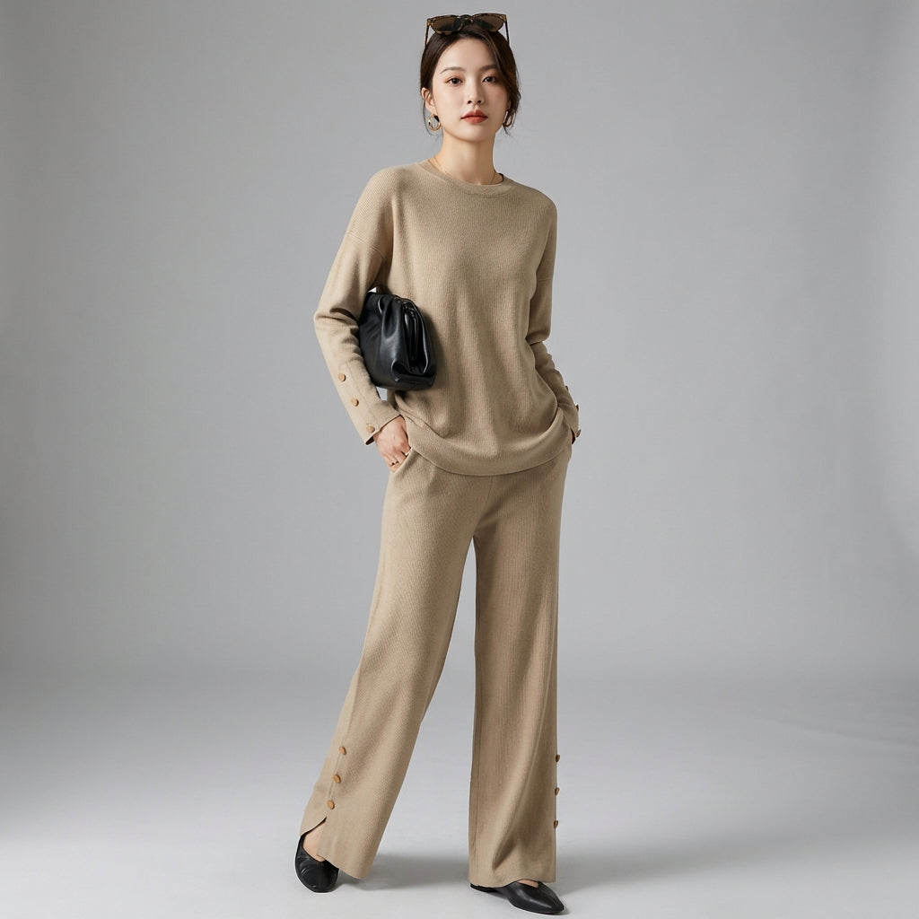 - Stile: Minimalista, Chic, Casual. Questo completo incarna la semplicità raffinata, facile da integrare in un guardaroba moderno per un look elegante e casual.