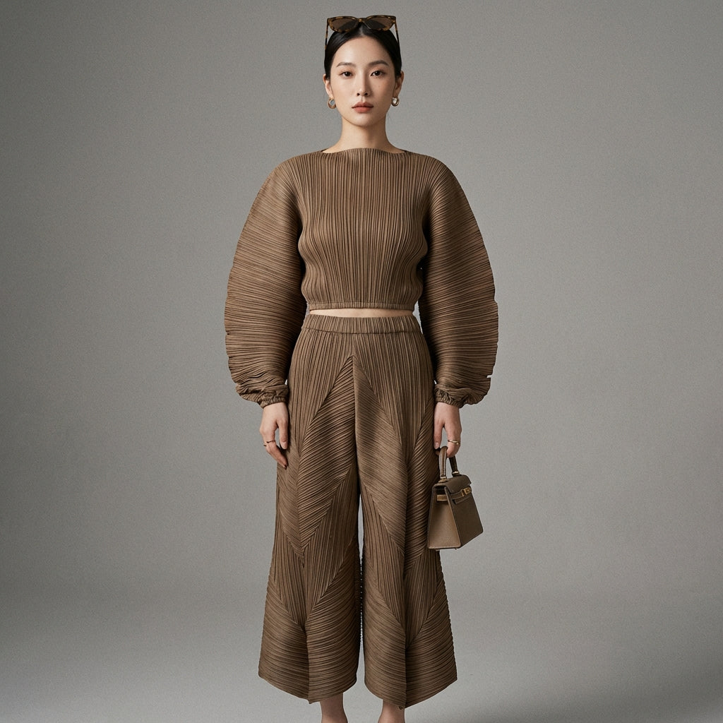 Scoprite il nostro completo due pezzi plissettato, perfetto per un look casual e chic. Composto da un top corto e pantaloni fluidi, questo completo offre una silhouette moderna e confortevole, ideale per tutte le vostre occasioni! ✨