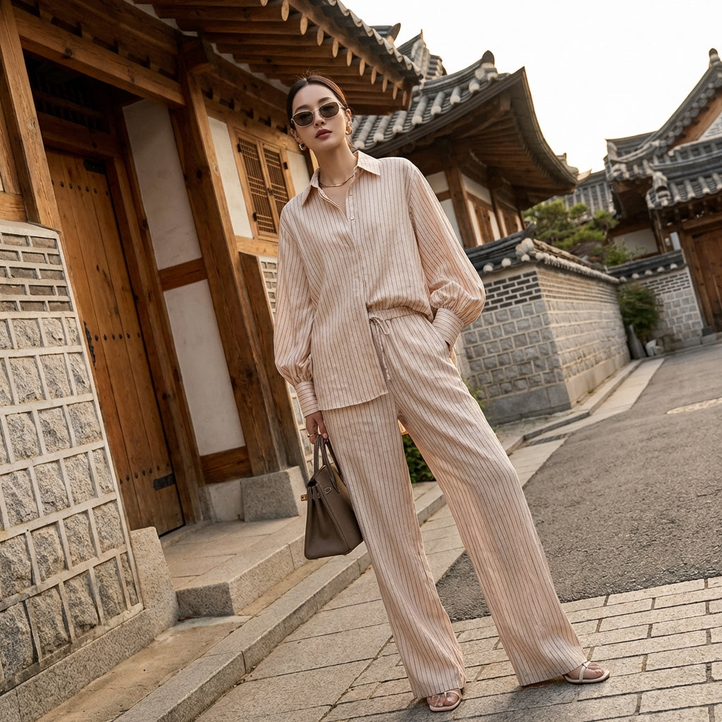 - Stile: Streetwear chic, Moda coreana, Tendenza. Questo completo incarna lo spirito della K-fashion con un tocco moderno e audace, perfetto per distinguersi.