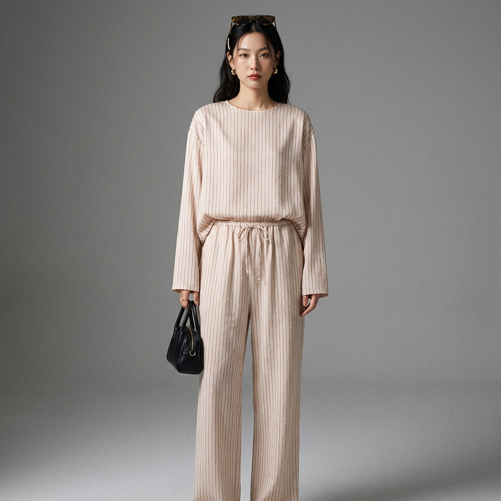 - Tipo: Completo casual, Blusa ampia, Pantaloni larghi. Un taglio comodo ed elegante, ideale per diverse occasioni.