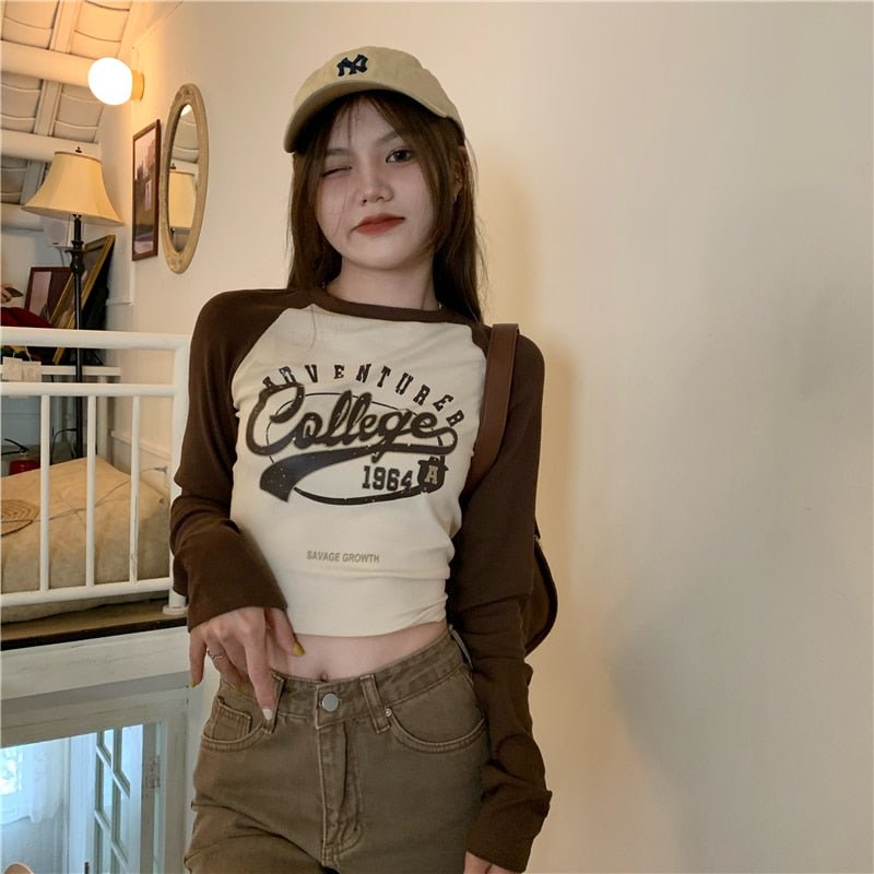 Questo crop top college è un top corto in stile americano molto apprezzato in Corea del Sud. Ha uno stile deciso con maniche colorate. È perfetto per ballare.