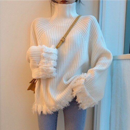 Se vuoi scaldarti in inverno, scegli questo bellissimo dolcevita coreano con un effetto pelliccia sulle maniche. È un top piacevole e molto elegante. Si adatta a tutti i tuoi outfit ed è progettato per il freddo coreano.