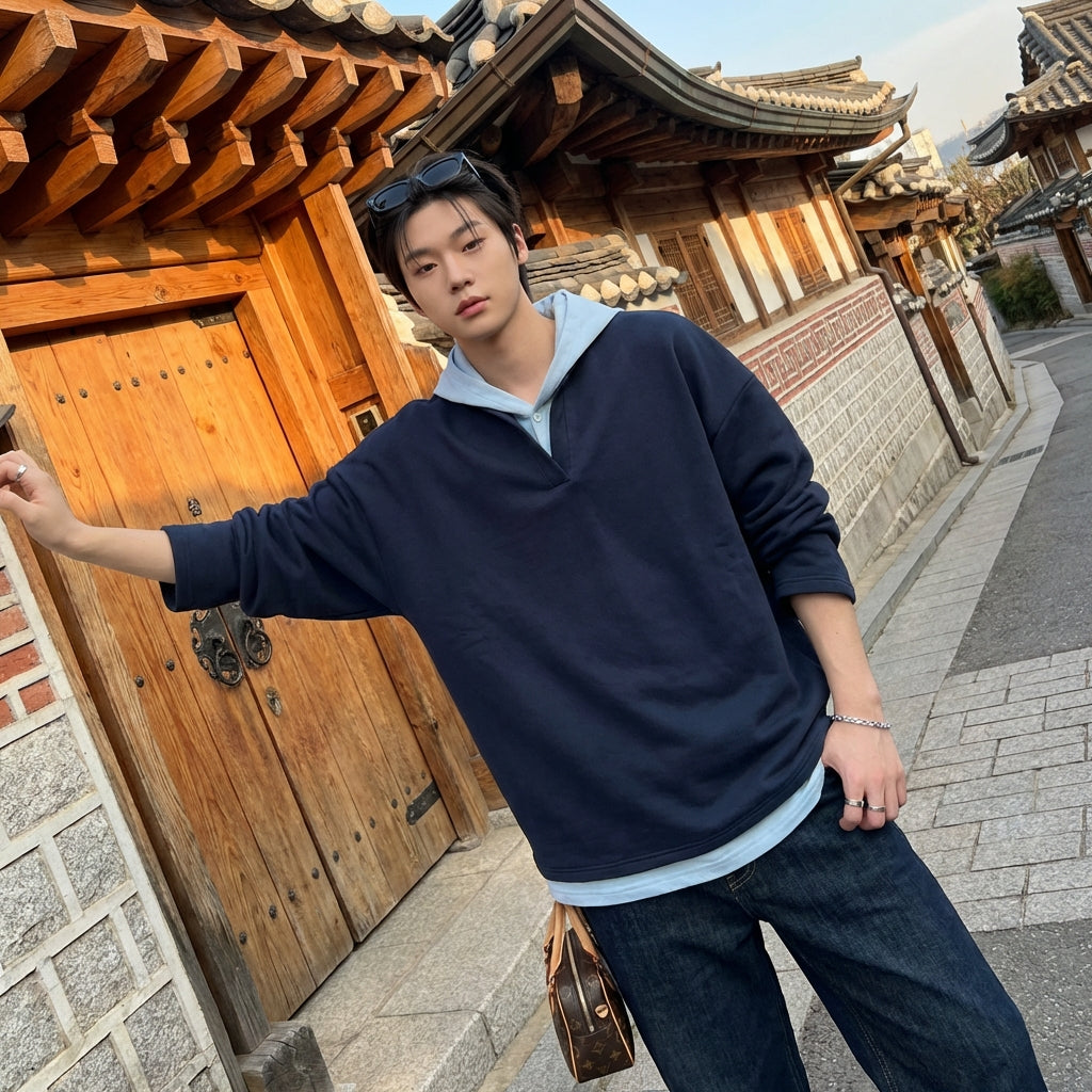 - Stile: Streetwear, Casual, Moda coreana. Questa felpa incarna l'essenza dello stile urbano con un'ispirazione K-fashion, perfetta per un look moderno e alla moda.