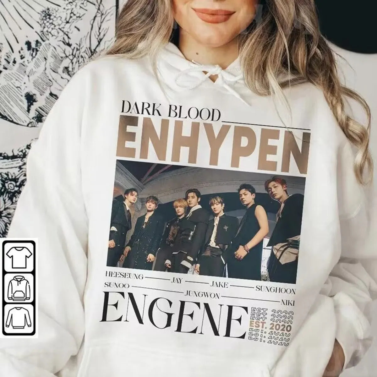 La Felpa con Cappuccio ENHYPEN DARK BLOOD è una dichiarazione di stile per i fan del Kpop e gli appassionati di ENHYPEN. Realizzata con particolare attenzione ai dettagli, questa felpa con cappuccio in poliestere con fodera in pile offre calore e comfort durante le stagioni fredde. La sua stampa audace e il design casual la rendono una scelta ideale per eventi per fan o per un look streetwear quotidiano. Con una vestibilità ampia e un'elasticità media, promette agilità in ogni movimento rimanendo alla moda.