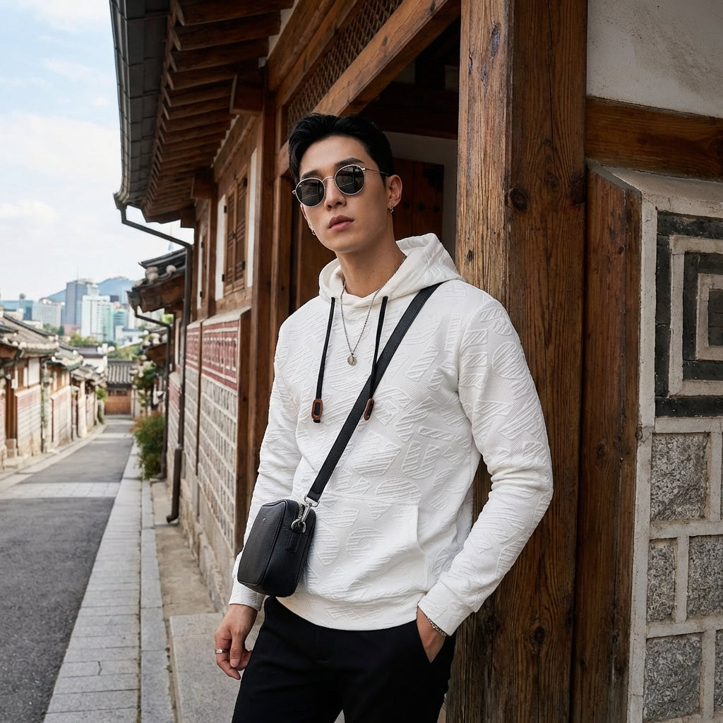 - Stile: Streetwear, Hip-hop, Tendenza. Questa felpa incarna lo spirito della moda urbana coreana con un tocco casual e moderno.
