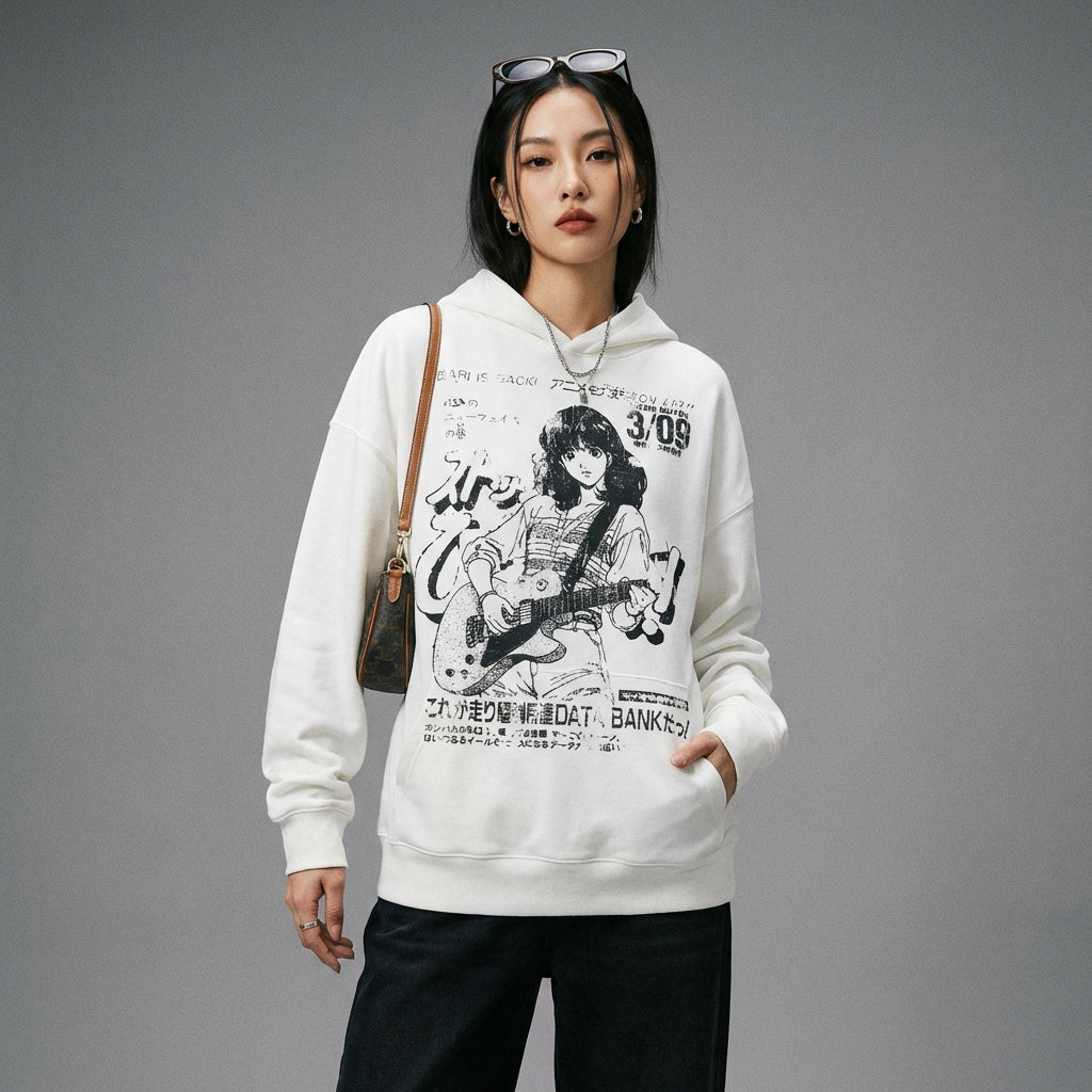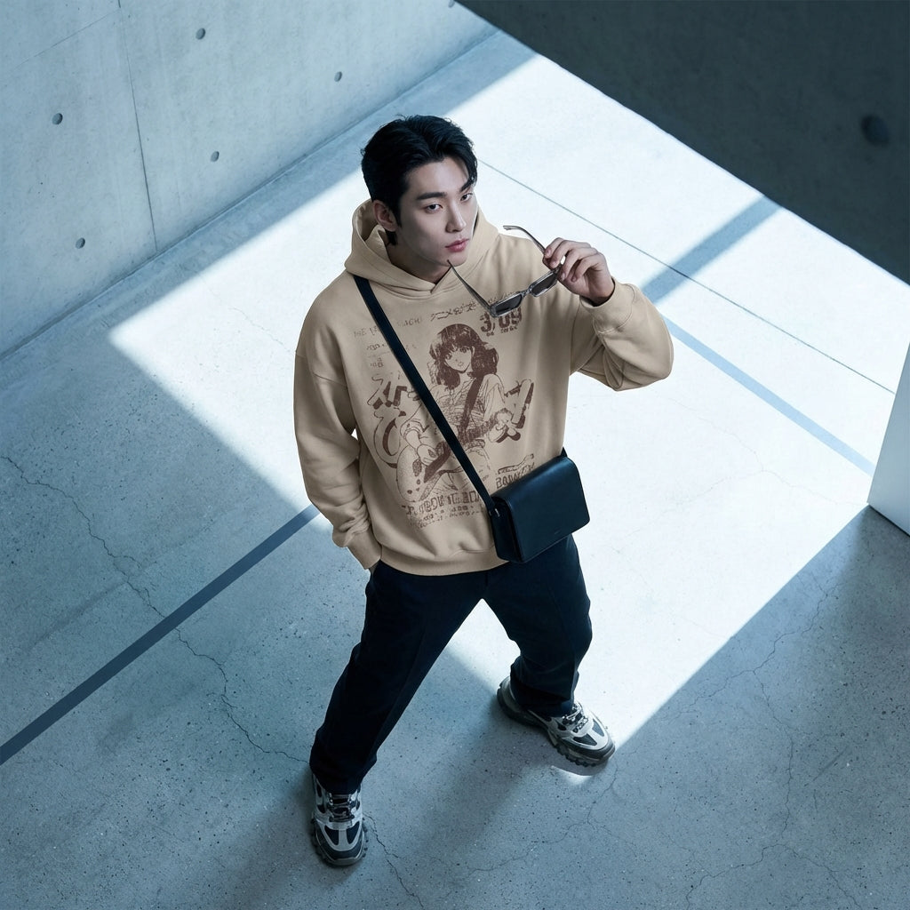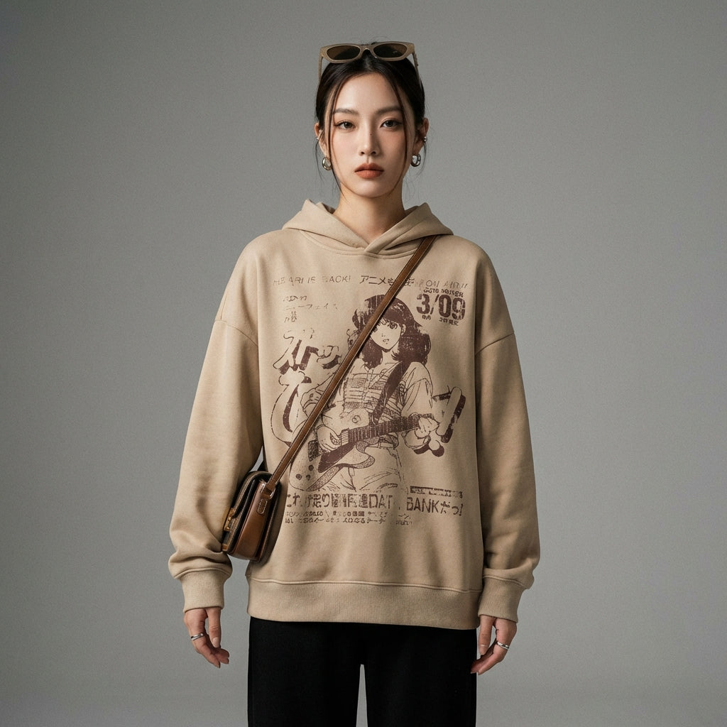 - Stile: Streetwear, Casual, K-fashion. Questa felpa incarna la moda urbana coreana con un tocco vintage, perfetta per un look audace e confortevole.