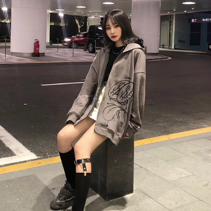 Questa felpa lunga ha un bellissimo smiley sul retro. È perfetta per un look coreano nella moda streetwear. È una felpa oversize che piace agli innamorati delle tendenze coreane tra i giovani.
