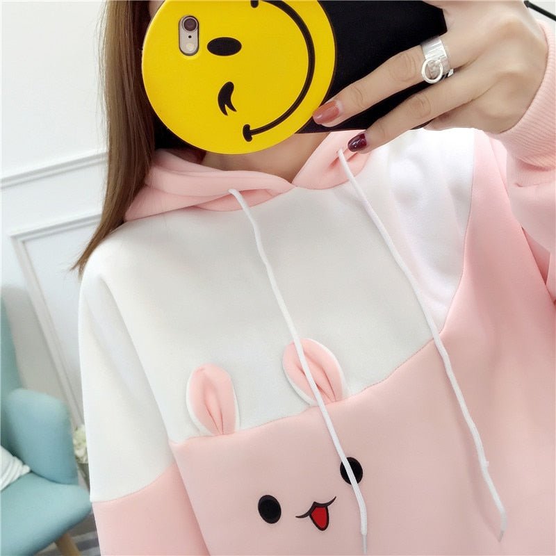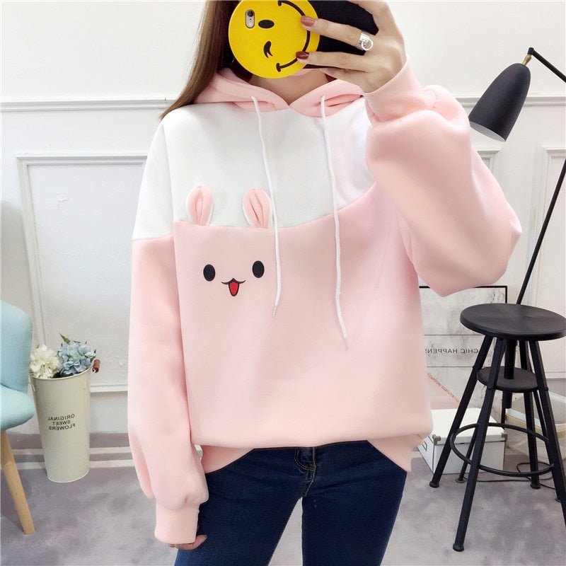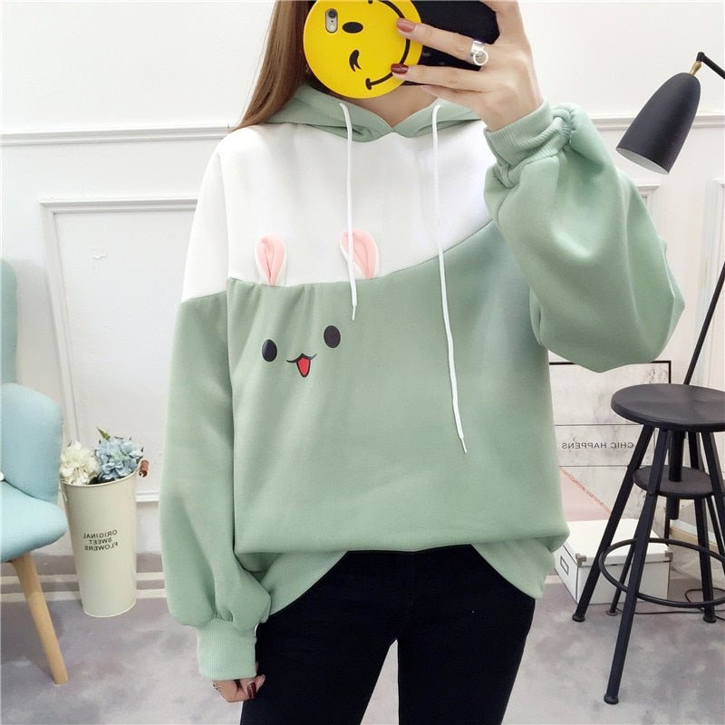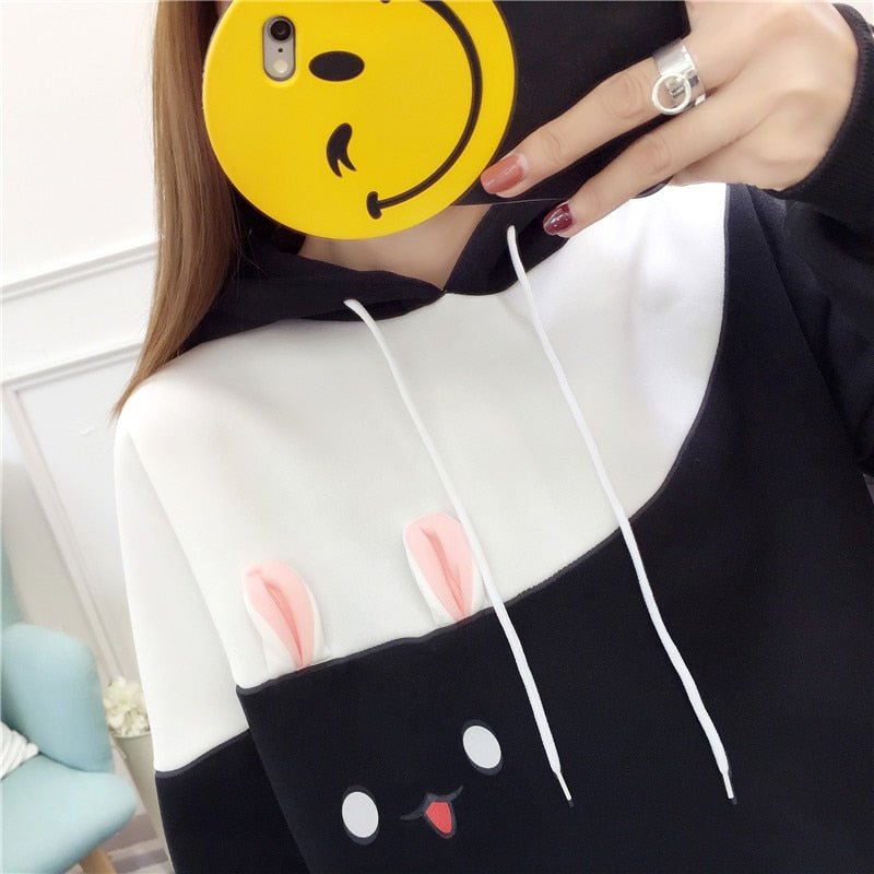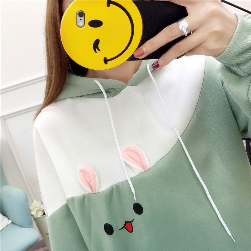 La Felpa con Cappuccio Coniglio è il capo indispensabile per tutti i fan dei coniglietti. Questa felpa è molto popolare in Corea del Sud grazie al suo lato carino.