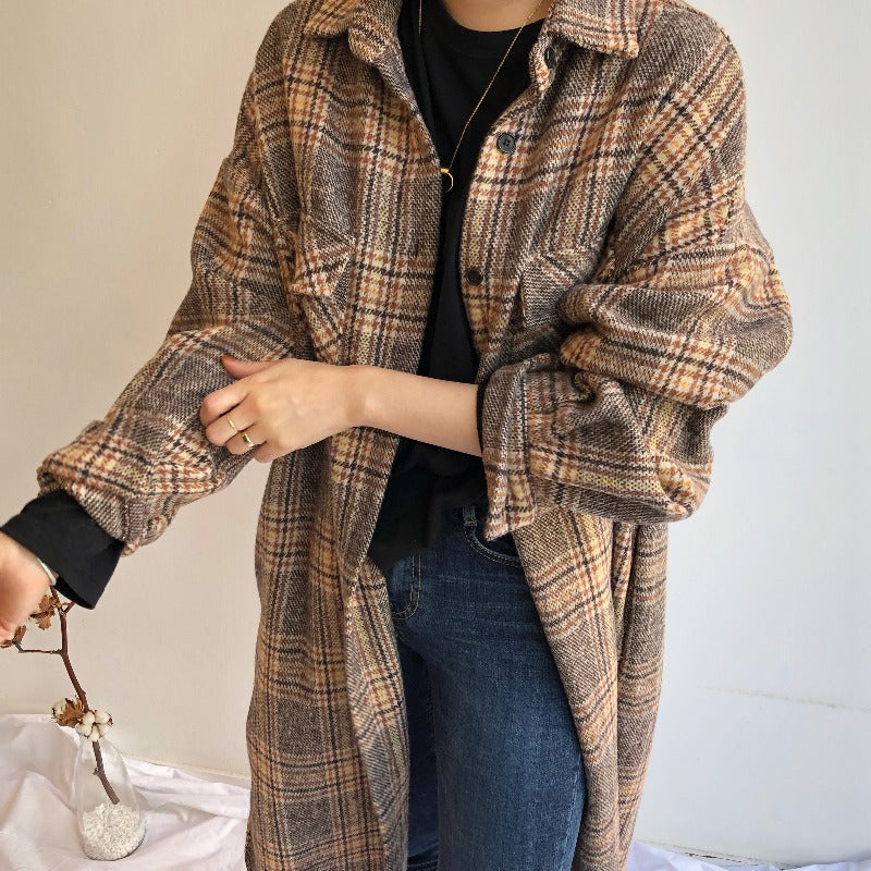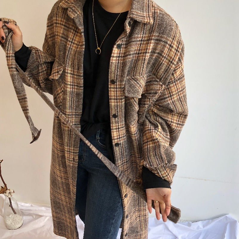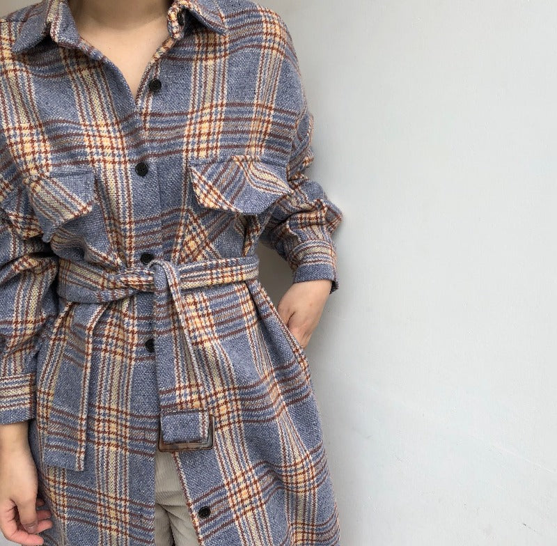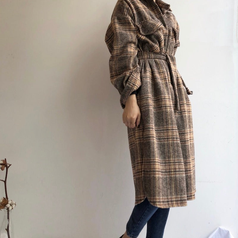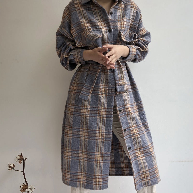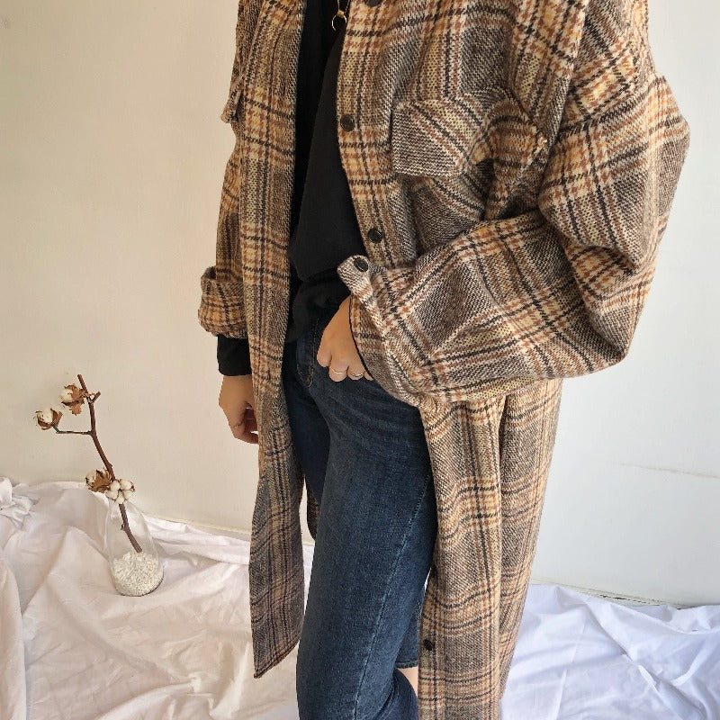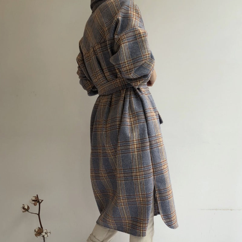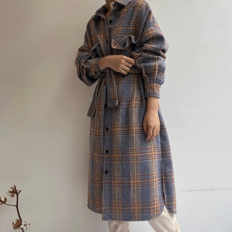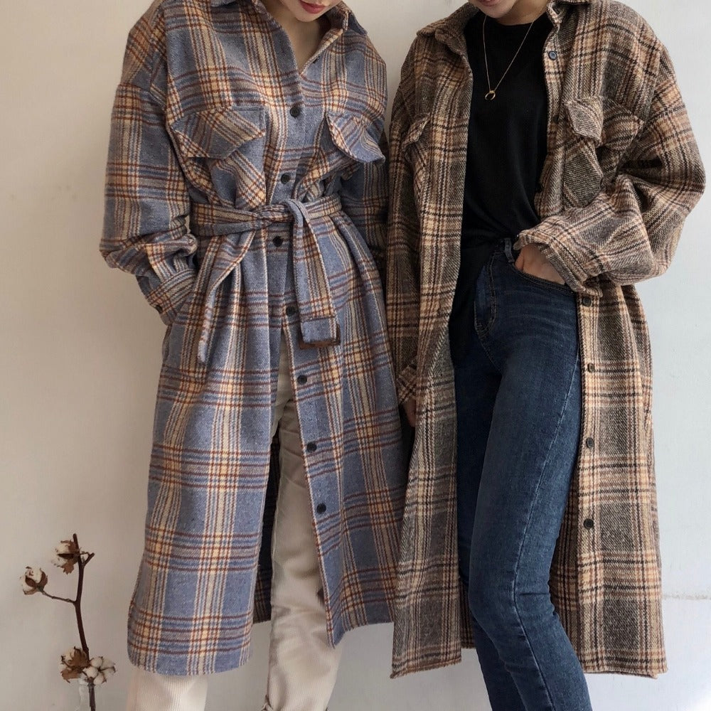 Ecco il nostro cappotto lungo a quadri ispirato alle tendenze coreane. Presenta un motivo vintage e un tessuto caldo. Il cappotto perfetto per le giornate fresche.