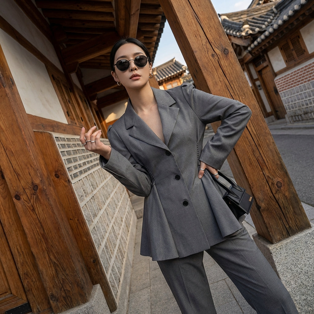 - Stile: Moda coreana, Elegante, Sofisticato, K-fashion. Questa giacca incarna l'eleganza discreta e le linee pulite della moda coreana, perfetta per un look raffinato.