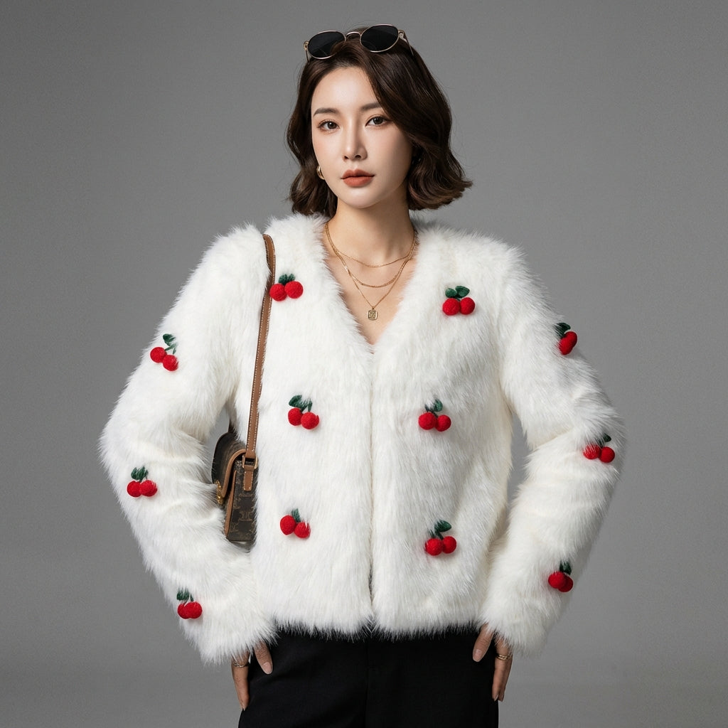 Scopri la nostra affascinante giacca bianca, impreziosita da delicate ciliegie in rilievo per un tocco di fantasia. Ideale per aggiungere una nota dolce e di tendenza ai tuoi outfit primaverili ed estivi! 🍒