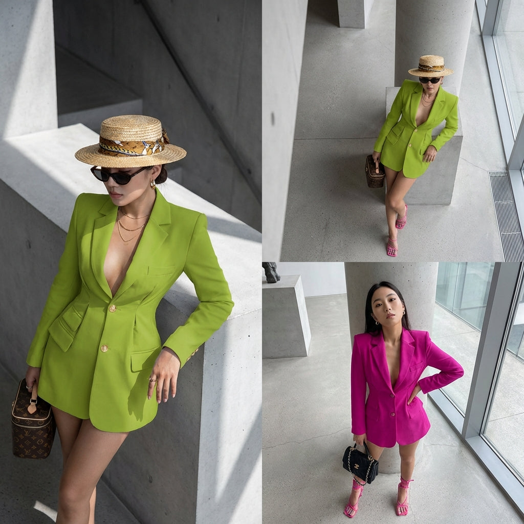 Adotta l'eleganza discreta con la nostra giacca da tailleur aderente, disponibile in tonalità tenui e primaverili. Il suo taglio sofisticato esalta la silhouette, ideale per un look professionale chic o un outfit casual raffinato! 🌸