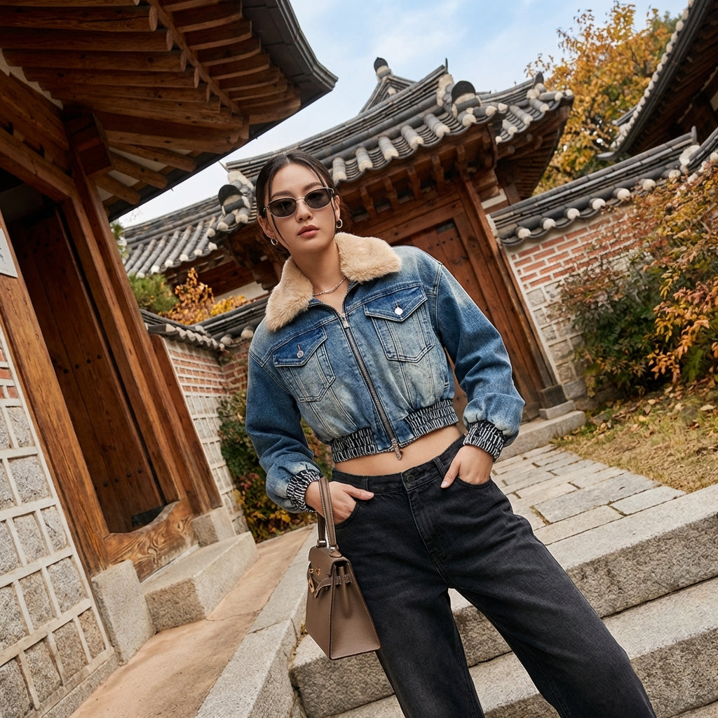 - Stile: Retrò, Streetwear, K-fashion. Questa giacca unisce il fascino intramontabile del denim a un tocco moderno ispirato alle tendenze coreane.