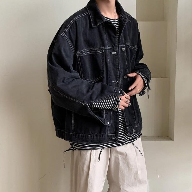 Questa giacca di jeans ricorda gli Stati Uniti degli anni '90. È un modello che piace molto ai coreani che hanno vissuto una grande crescita in quegli anni. Il taglio è piuttosto ampio e il tessuto in cotone e poliestere è di qualità.
