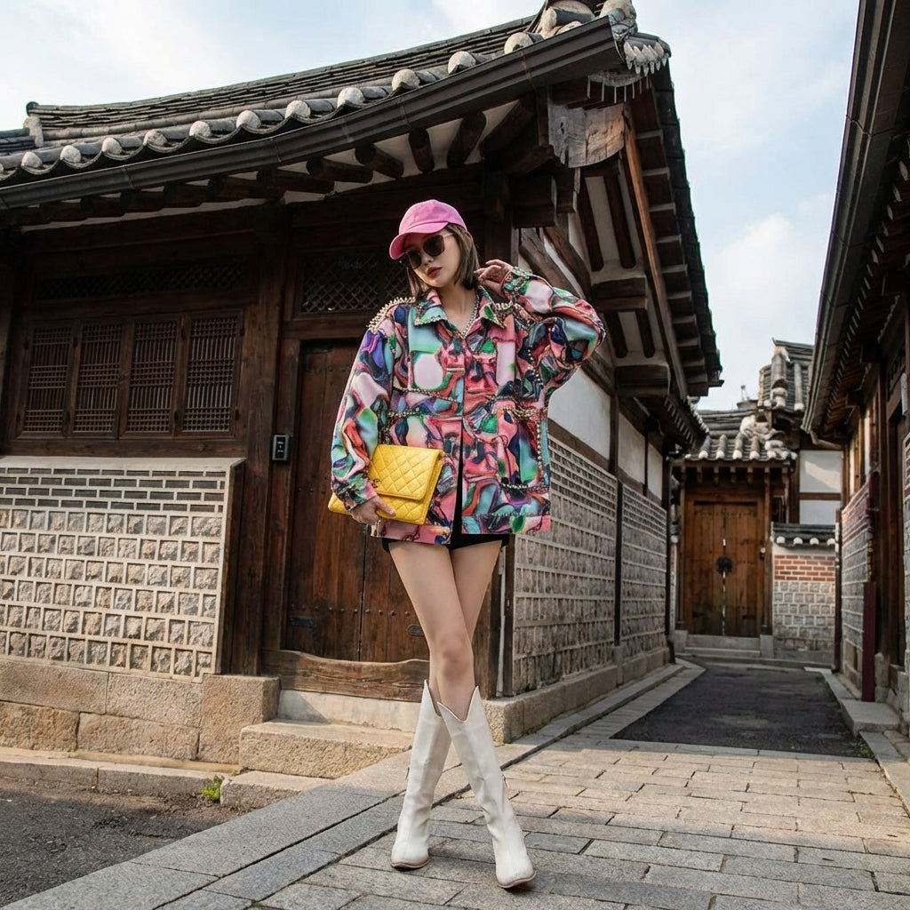 - Stile: Streetwear, Tendenza, K-fashion. Questa giacca incarna lo spirito casual e audace della moda coreana, con un tocco urbano.