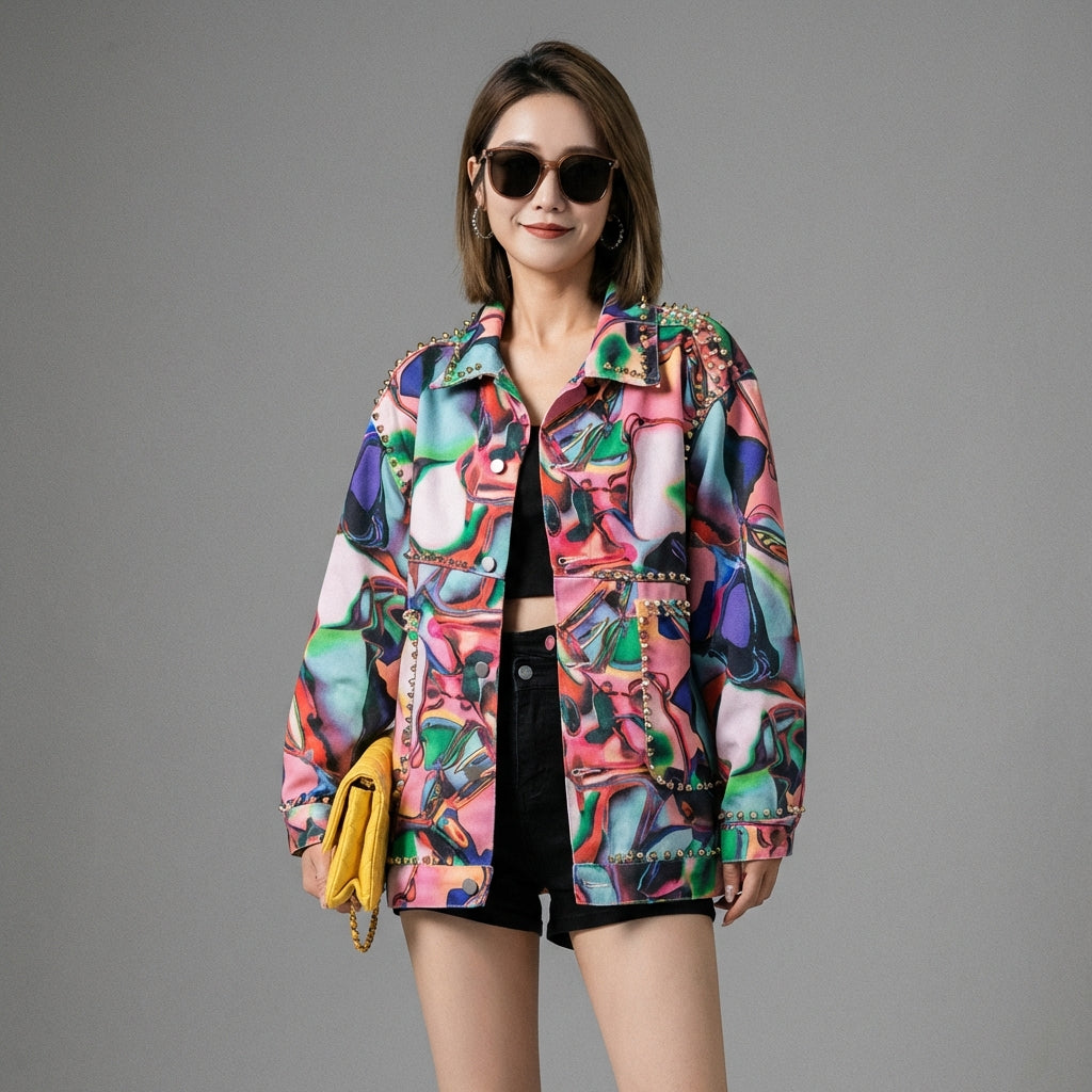 Afferma il tuo stile con la nostra giacca oversize in denim, impreziosita da rivetti per un tocco ribelle e di tendenza. Il suo colletto a revers e le maniche lunghe la rendono un capo versatile e confortevole, perfetto per ogni occasione! 🌟