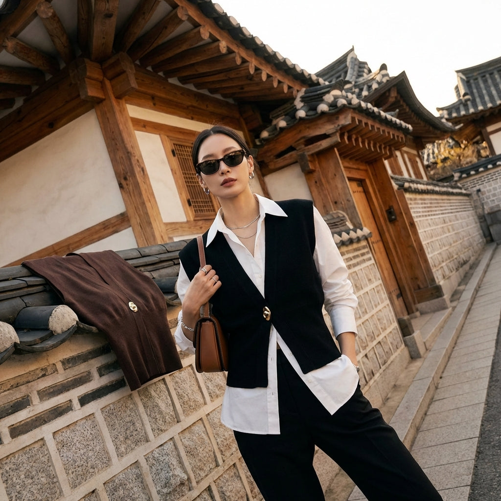 Con il suo design intramontabile e la sua versatilità, questo gilet diventerà rapidamente un capo essenziale del tuo guardaroba Koreanxwear, aggiungendo un tocco di eleganza discreta al tuo stile.