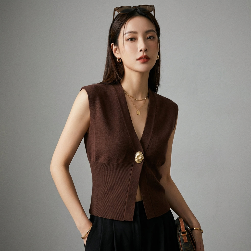 - Tipo: Gilet, Senza maniche, Vestibilità aderente. Un capo versatile ed elegante, progettato per valorizzare la silhouette.