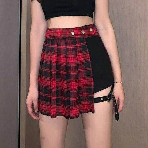 Indossa questa gonna con cintura sulla coscia per un look attuale di donna che si assume. È una gonna perfetta per le fan del K-pop e della danza coreana. Questa gonna a quadri è disponibile in diversi colori.