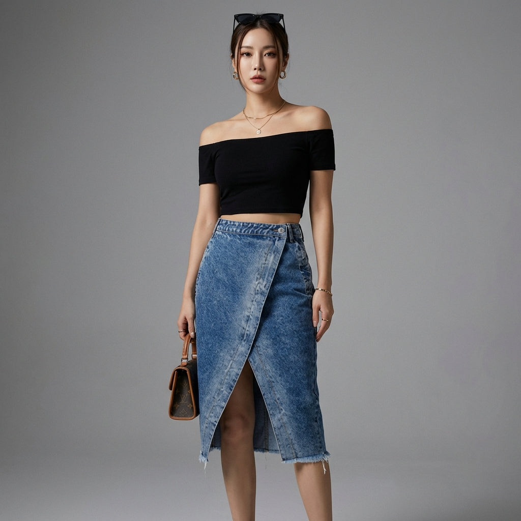 Afferma il tuo stile con la nostra gonna lunga in denim, caratterizzata da una vita alta e uno spacco audace per un tocco moderno. Perfetta per un look casual chic, unisce comfort e tendenza per tutte le occasioni! 💙