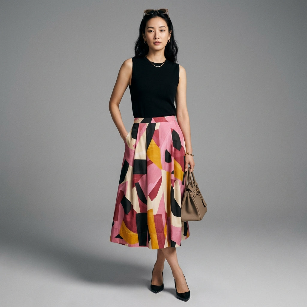 Con questa gonna midi, scegli un capo chiave che unisce comfort, stile e adattabilità, permettendoti di creare una moltitudine di look di tendenza ispirati alla moda coreana.