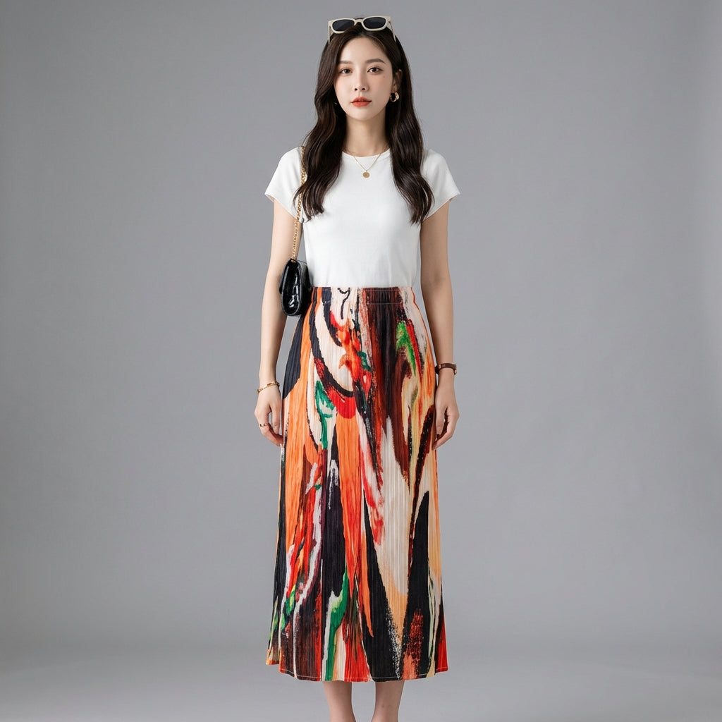 Adotta un look di tendenza e sofisticato con la nostra gonna a pieghe stampata a vita alta. Il suo design elegante e il taglio confortevole la rendono un capo irrinunciabile per uno stile casual o più elegante! 🧡