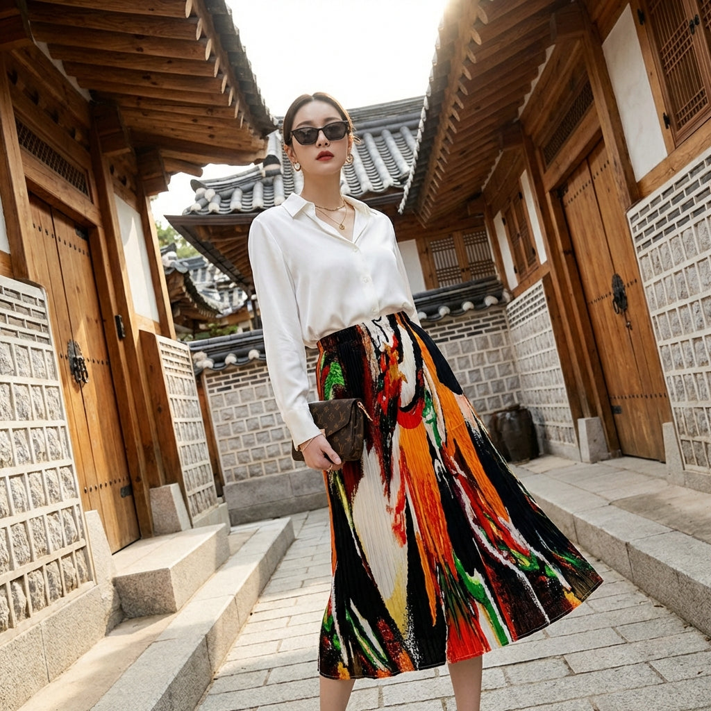 - Stile: Moda coreana, Urbano, Tendenza. Questa gonna incarna l'eleganza casual della K-fashion, perfetta per un look moderno e stiloso.