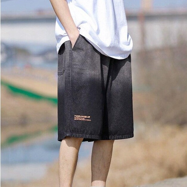 Questi shorts di jeans che piacciono ai giovani sono sfumati dal basso verso l'alto.