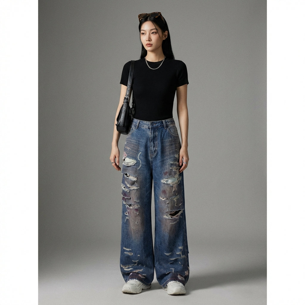 - Stile: Streetwear, Casual, K-fashion. Questi jeans incarnano lo spirito della moda urbana coreana con un tocco moderno.