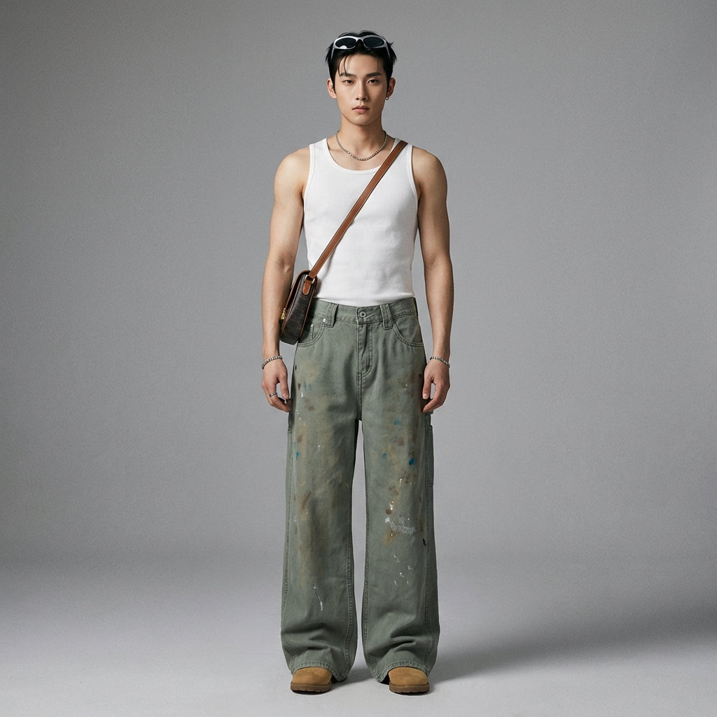 Adotta un look casual e alla moda con i nostri jeans dritti larghi, perfetti per un'estetica streetwear decisa. Il suo lavaggio unico e i dettagli sottili lo rendono un capo essenziale per qualsiasi guardaroba moderno! ✨